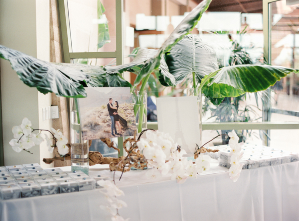The desert garden wedding transitioned into Paris in the jungle, with huge philodendron leaves and orchids at each table setting. Seafoam green and grey dominated, with white and silver to complement the palette. A photobooth with tonnes of fun props entertained guests and the bride and groom, and to end the evening, the newlyweds changed into traditional Vietnamese wedding attire!