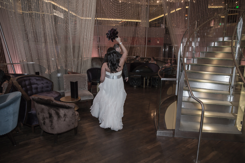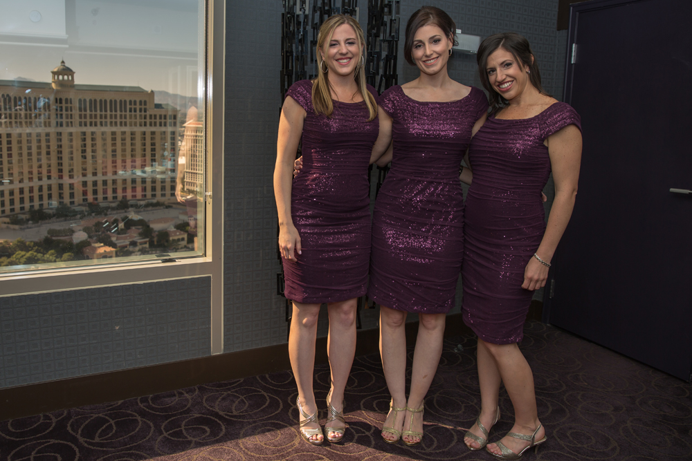 If you haven’t realized it by now, one of the biggest reasons to have a destination Vegas wedding is the excuse to have a weekend (or week) long party! Allison and Robin did just that, traveling from Boston for their wedding with guests joining them from all over the US. Their wedding weekend included stops at the cabanas of Planet Hollywood’s pool, a welcome party in a PH Boulevard Suite and double decker bus ride up and down The Strip. Of course there was also the wedding itself, and then not only one but two afterparties!