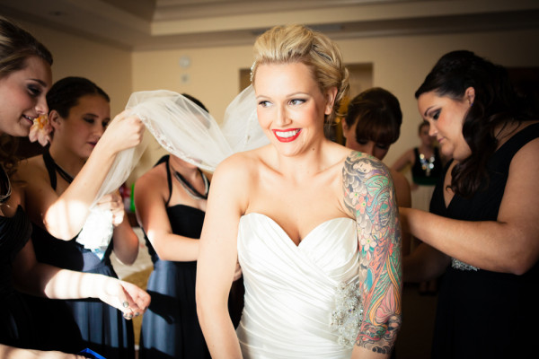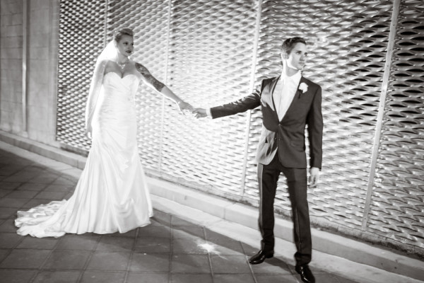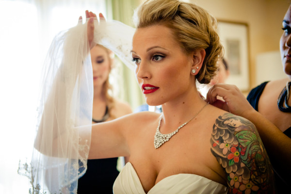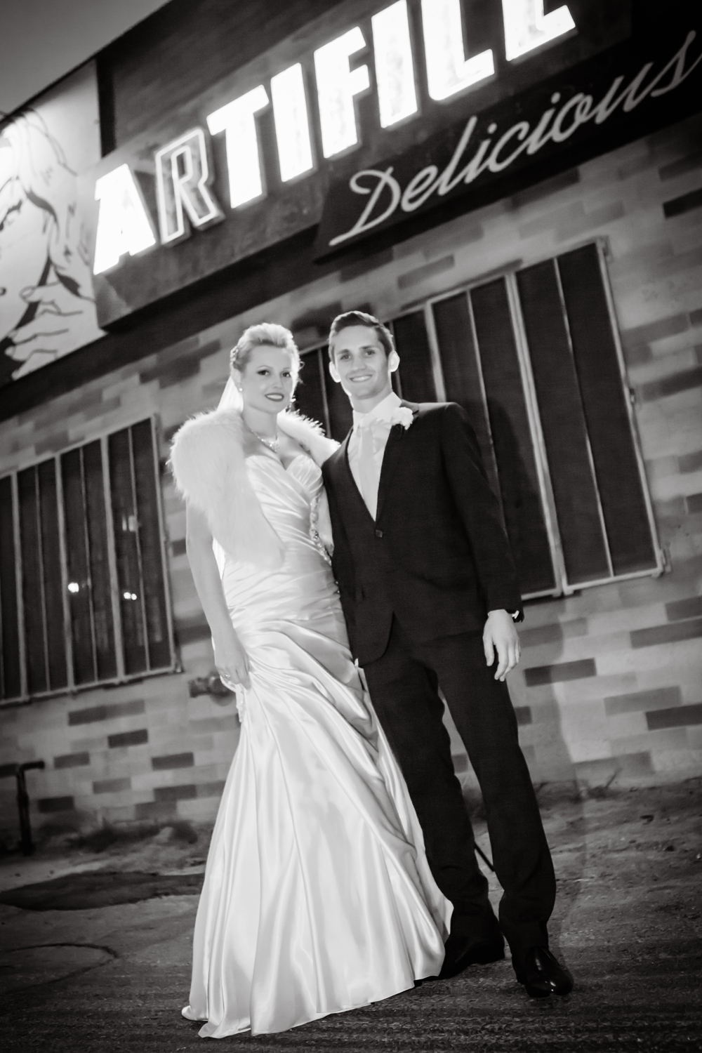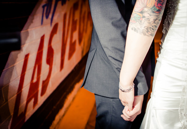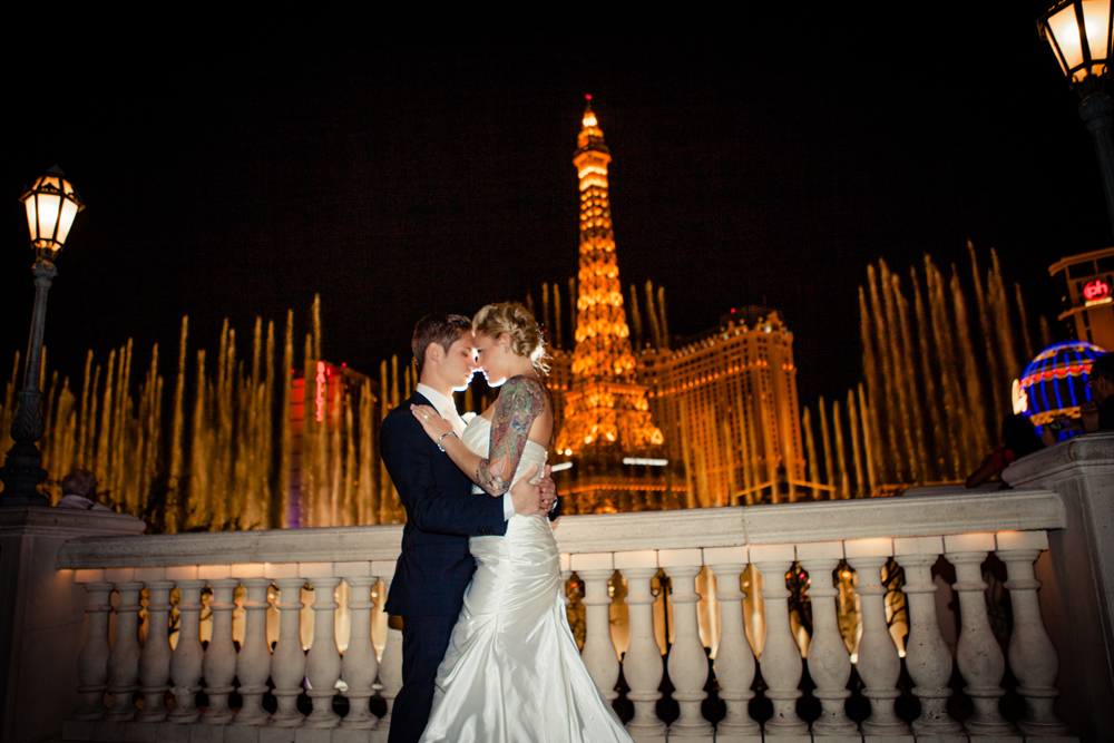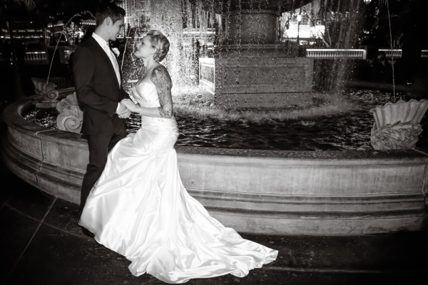 Nicole was a gorgeous bride with her retro-style makeup look and a wedding dress that evoked old Hollywood glamour. I love that they were able to sneak away from their reception to do some bridal portraits in downtown Las Vegas and on the Strip to finish the night. Be sure to check out their wedding film from Memory Lane for some shots of the reception.Â