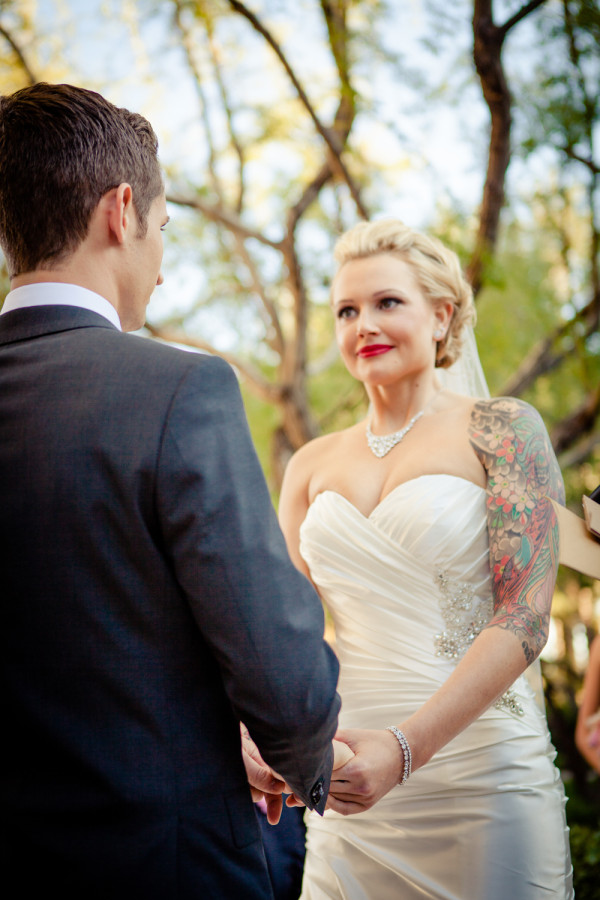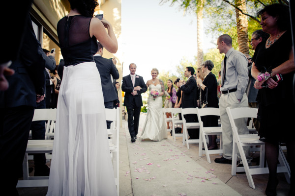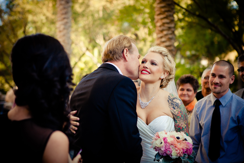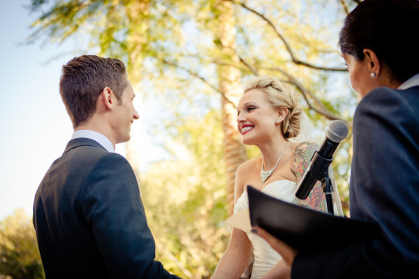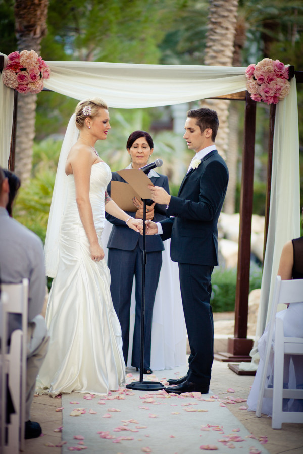 We didn’t want a big wedding and tried to keep things as simple as we could, but still nice. We also got lucky with perfect weather for our outdoor ceremony! For our reception we rented out a small space on the second floor at Spago in Caesars Palace. The food and the service was incredible.