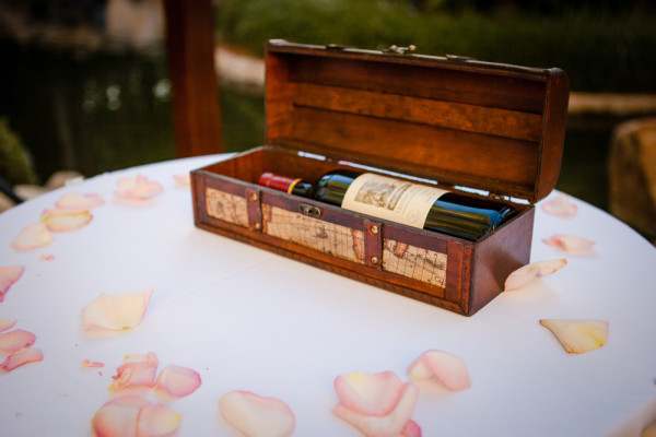All of our centerpieces and table decor at the reception were made by me. Also as the wedding favors, one of my best friends who is a chocolatier special made chocolate boxes and chocolates just for our wedding. Something fun we did at the ceremony was write love letters to each other that we enclosed with a bottle of wine. The plan is on our first anniversary to drink the bottle of wine and read each others letters.
