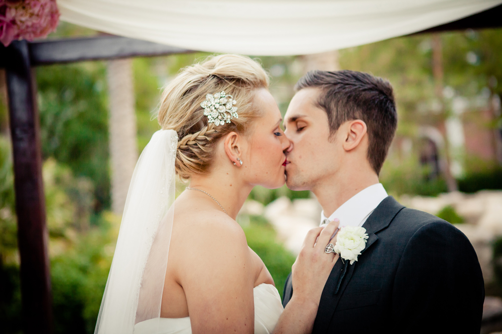 I swoon for autumn, I’ll admit it. And a wedding in the fall in Las Vegas? Even better! Christophe and Nicole are two locals who met while working at a high-end restaurant together. They married in the beautiful gardens of the JW Marriott. Can you even tell when looking at the photos that their nuptials were in November?
