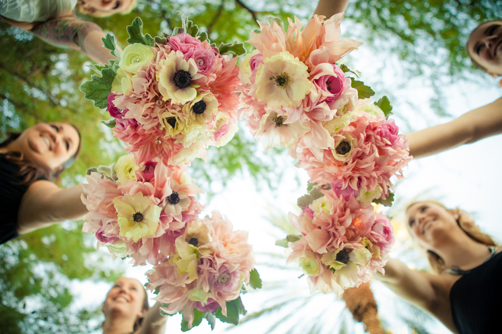FLORAL . Roxi Floral / CATERING + CAKE . Spago / BRIDAL FASHION . dress – Allure, Celebrations Bridal + Fashion, shoes – Jimmy Choo Crown peep-toe pumps / / BRIDESMAIDS . Celebrations Bridal + Fashion / VIDEOGRAPHY . Memory Lane