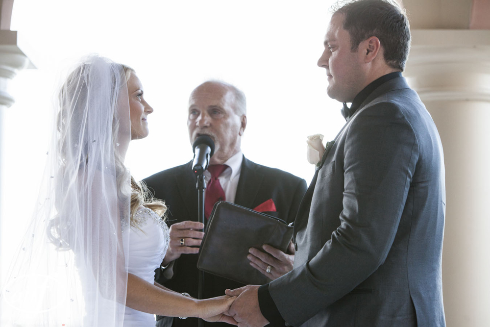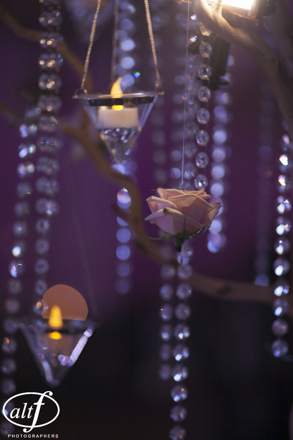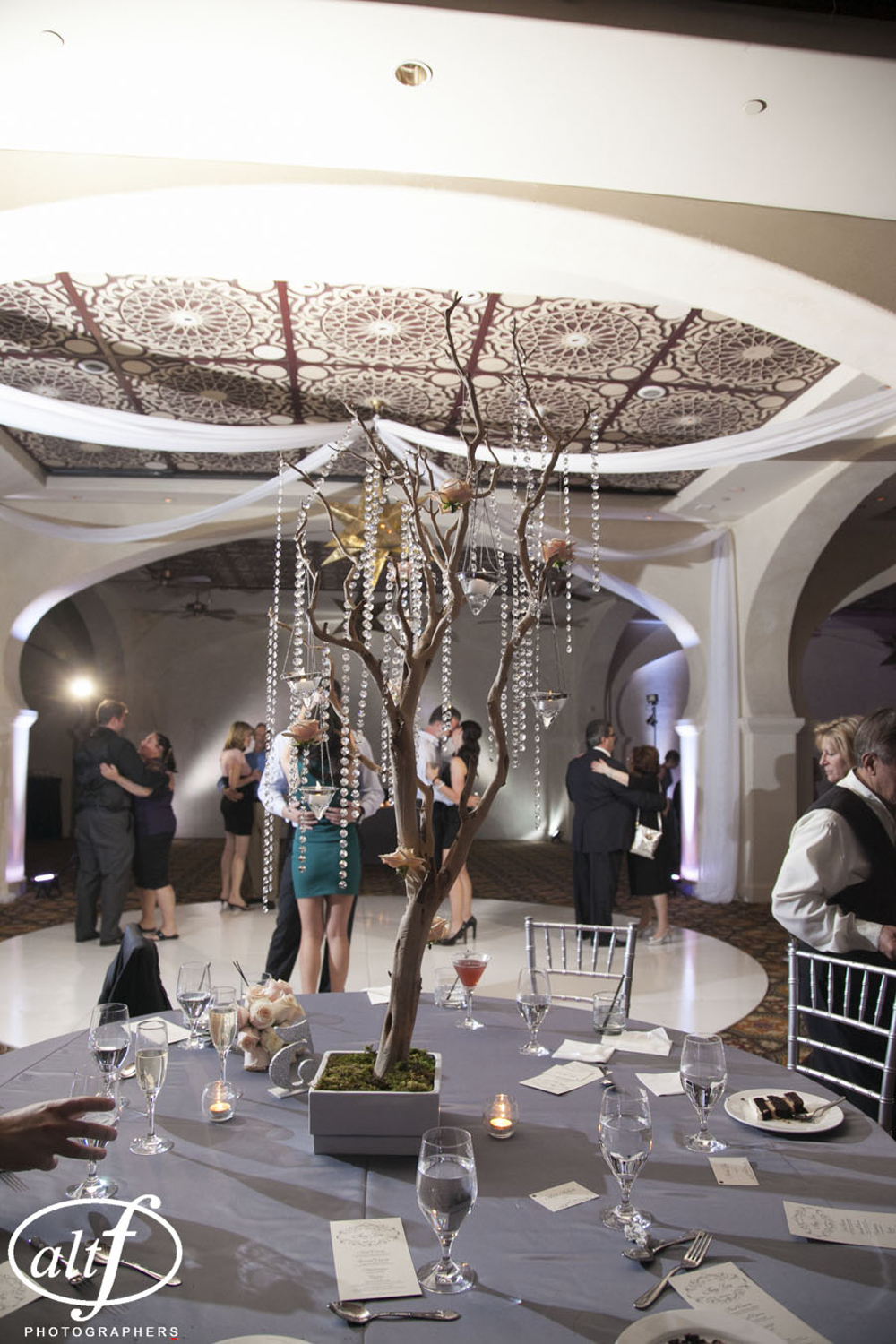 From our first meeting, it was obvious that this would be a team effort. Amy had a very strong vision of what she wanted in terms of colors and design. Her heart was set on getting married on the water, which reminded her of her native San Diego. With a color palette of steel gray and pale pinks and a request to accent the space with roses, petals, and crystals for a soft and romantic feel.