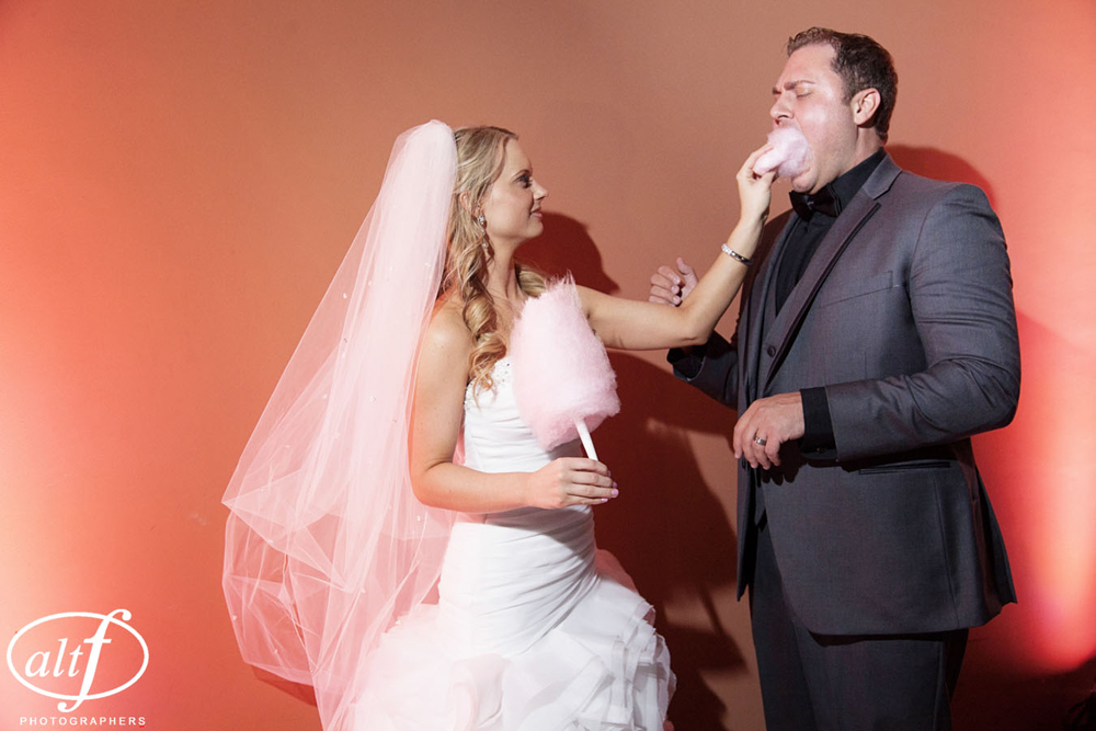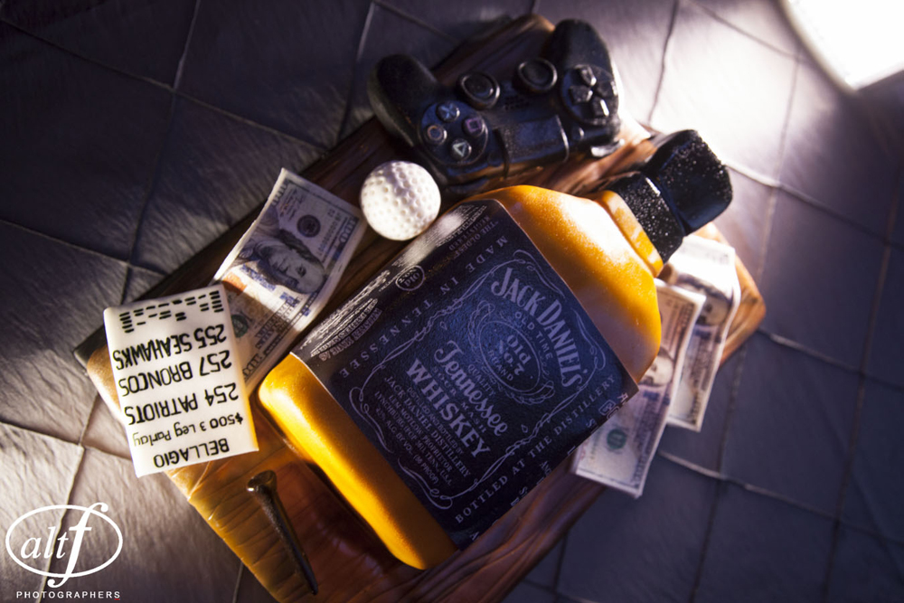 As a surprise for her groom, a man who wooed her with super-human efforts, Amy arranged for the photo booth to have LED light up super hero masks, and for a Groom’s Cake that featured all of the naughty Vegas activities that Eric once loved.