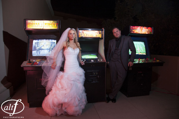 Video games at a wedding? Be still my heart! This very special wedding debuts a few new elements to Little Vegas Wedding: the first feature photographed by the fantastic Altf Photography, the first wedding planned and submitted by planning pro Andrea Eppolito and, of course, those video games!