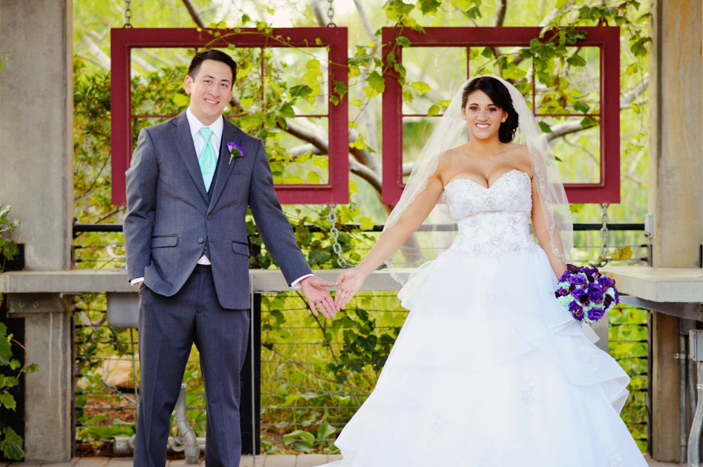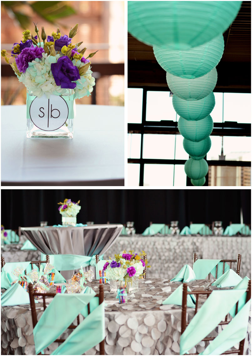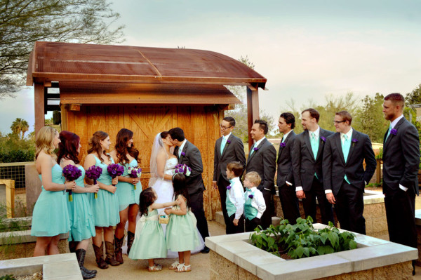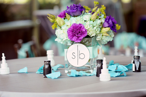 Stacey and Brandon’s fresh Springs Preserve wedding was accented with turquoise, silver and purple colors. I’m in love with their wedding monogram, which provided a modern graphic element to the garden wedding and reception.