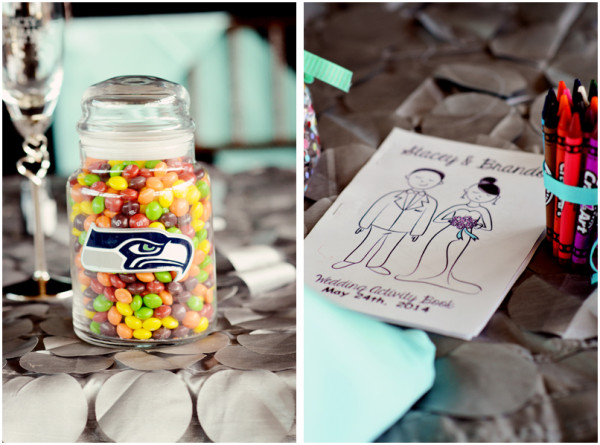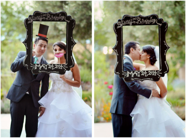 Much of our wedding was DIY! The card box was handmade, the frame that hung at the altar for pictures was handwritten, the tulle over the altar was all done by hand, the sunglasses sign for the favors as well as the coloring books and crayons were all put together by the bride.