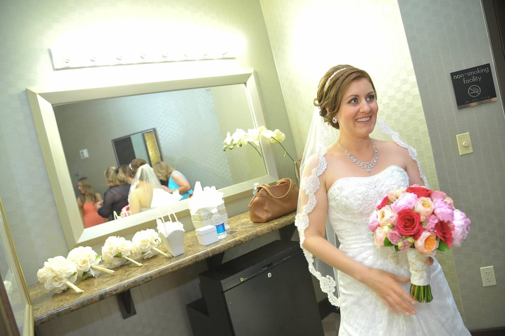 We also did a first look to reduce our cocktail hour. We did not want our guest waiting 1-2 hours for our reception to get rocking, so we did all our photos in the morning. Highly recommended! We had the energy still to walk around the Mandalay Bay property, my makeup was fresh, it wasn’t hot yet, tourist were still sleeping (no photo bombers!) and we got many intimate moments photographed that we wouldn’t have otherwise.Â