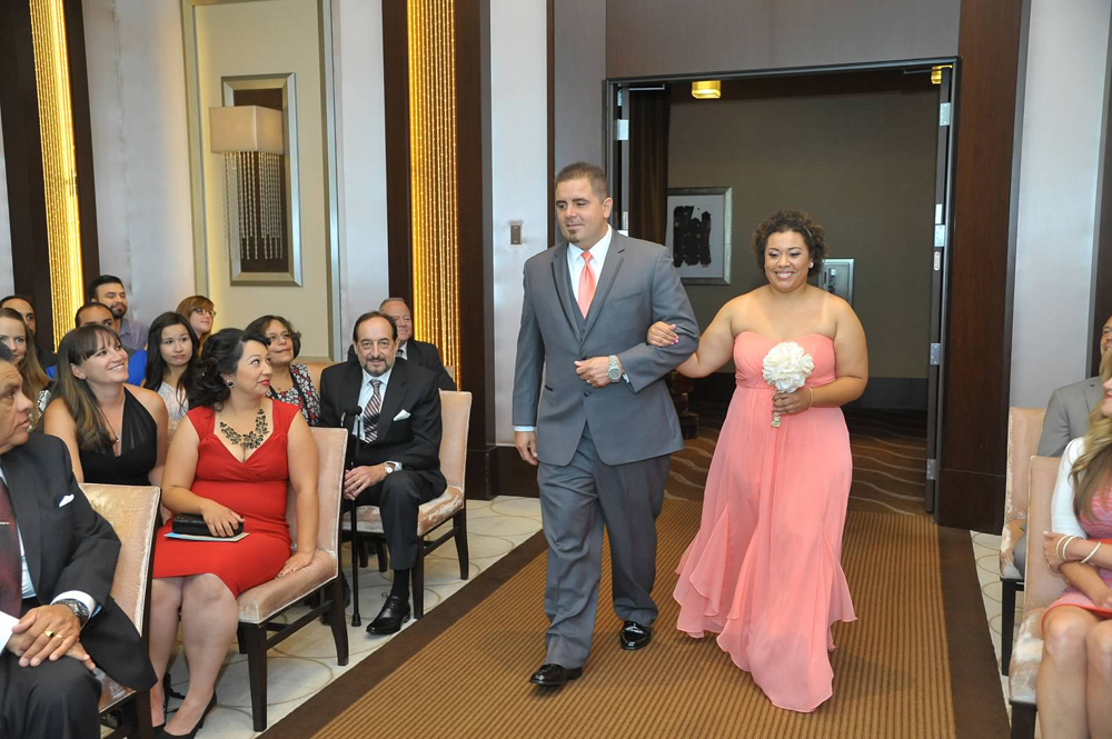 Originally, we were looking into having our ceremony at the Valley of the Falls at Mandalay Bay, however we decided to take the bulk of our wedding funds and use them in a better reception. After all, the ceremony is only 15-20 minutes long. Valley of the Falls is pretty, but the upgrade fee was pretty high, I wanted to avoid the heat and making our guests walk a longer way to our reception. So with the pros and cons, we decided to stick to a basic, beautiful chapel that was air conditioned, had a pianist and would be comfortable for everyone. During our original venue search in Vegas, my husband and I agreed immediately that Mandalay Bay has the nicest chapels and reception areas on the strip! We were impressed by how nice everything was and that it was affordable!