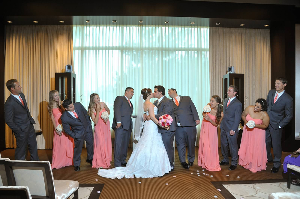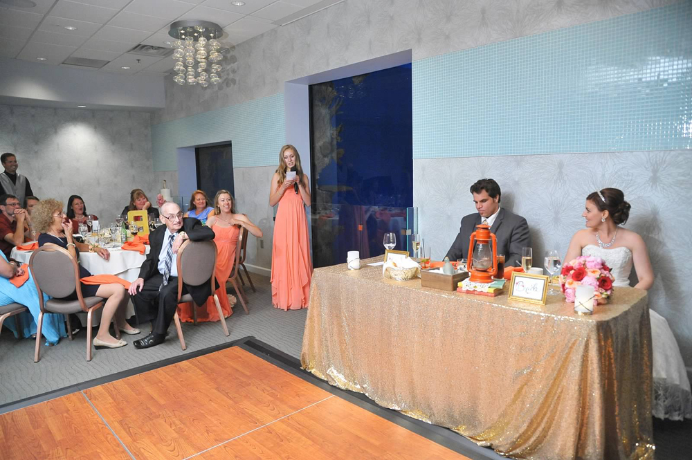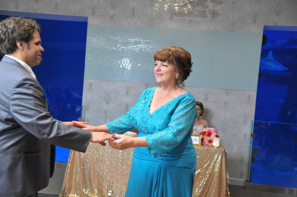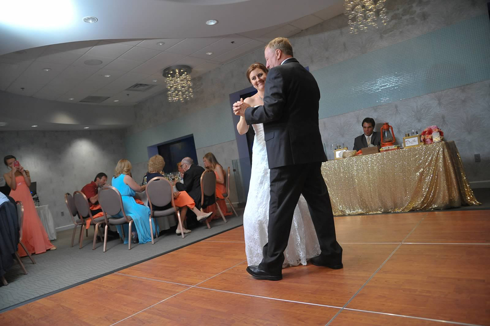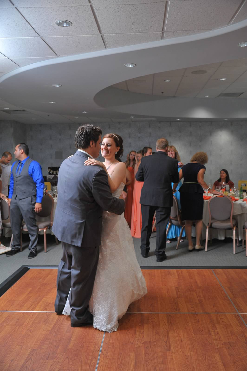 Our Grand Entrance/First Dance was absolutely one of the BEST parts of our entire day! We planned it our strategically with our wedding planner and I love how it was executed! For our Bridal Party, the DJ started by playing the theme song to Jaws to help draw the crowd’s attention to the doors. Everyone was laughing so hard! After everyone was introduced, it was our turn and we did our first dance to the version of “Octopus’s Garden” by The Beatles used in the Cirque du Soleil LOVE production. The song was perfect because in this version, they slow down Ringo’s voice and add some bells which was perfect for raising the curtains to. I can cry just thinking about it; everyone was shouting out things like, “WOW!!! LOOK AT THAT!! OMG!!” I looked at my husband and both of us were beaming from ear to ear. We knew we did this right. After about a minute, we invited all guest to come dance with us.Â