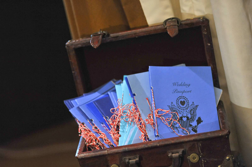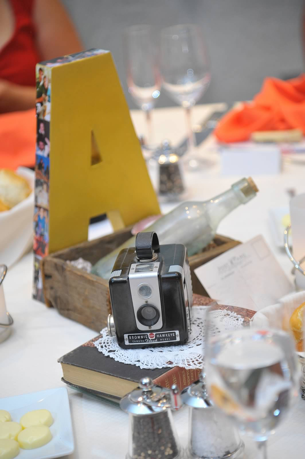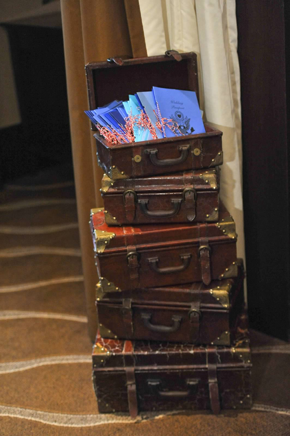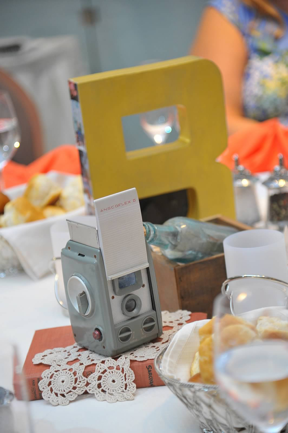 Being that this was a destination wedding, I tried to keep my DIYs to a minimum because traveling in the heat with breakables and bedazzled items just doesn’t work. You can see some more details about my projects here. To fit our vintage travel theme I made passport style programs, message in a bottle escort cards and 3D table letters with photos of us decoupaged on the edges. We rented vintage suitcases and cameras from Nostalgia Resources to complete the theme — Veronica was great to work with!