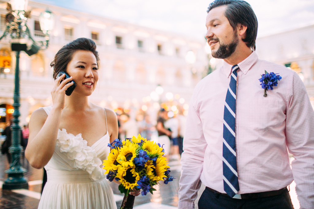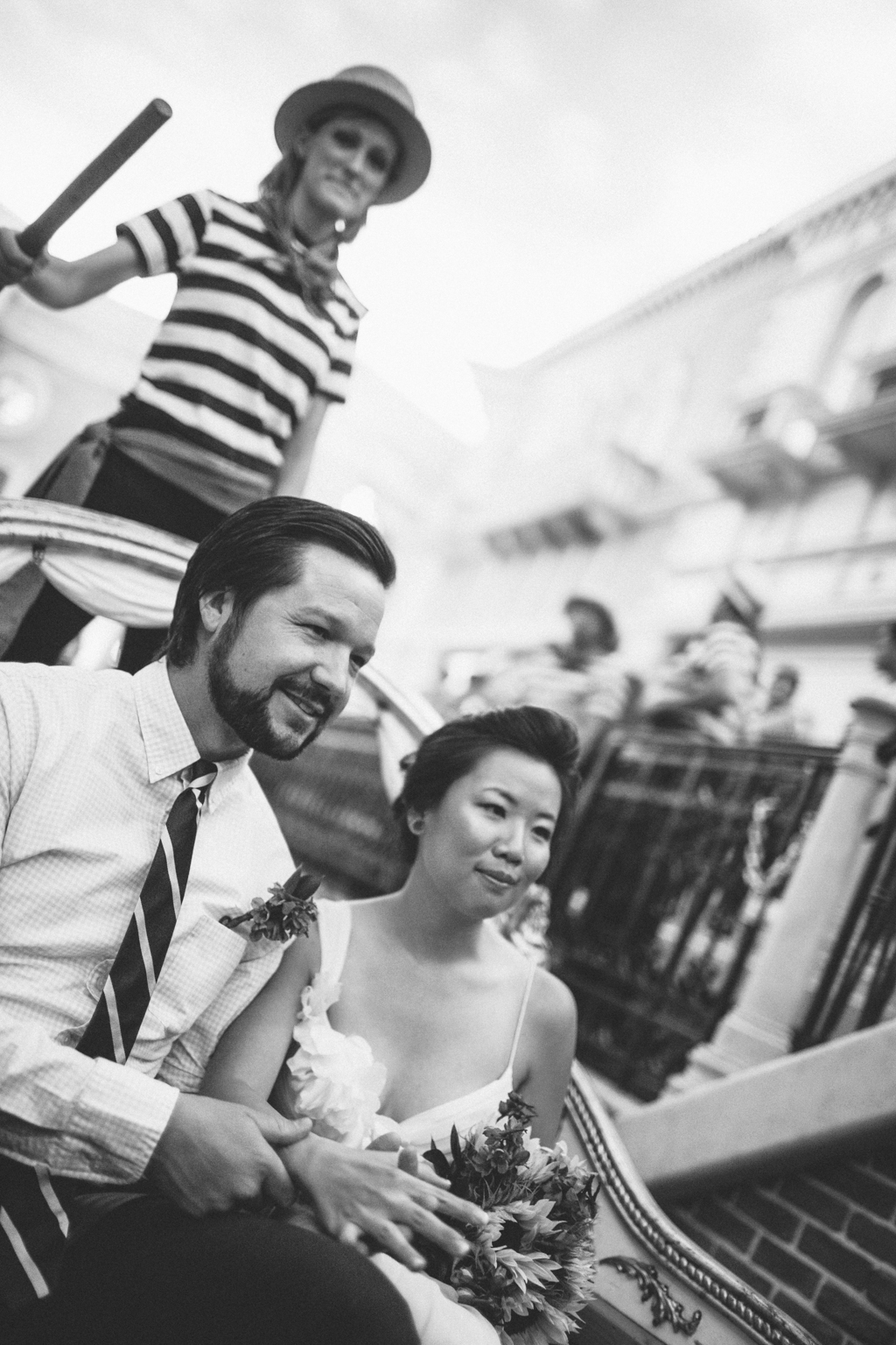 We decided to do the Venetian gondola wedding because Hanna’s family, who is very traditional, was not that happy with our initial plan to be married by Elvis. We wanted to keep things low key and enjoy the day, so after the ceremony we toured the Strip and did some sightseeing, in addition to taking a bit of time to take photos at the Neon Museum. We spent a few extra days in Las Vegas, seeing shows and just enjoying the city afterwards.
