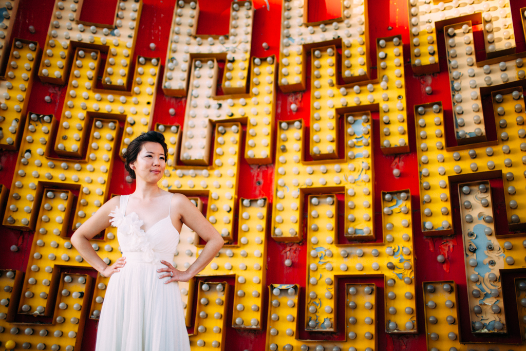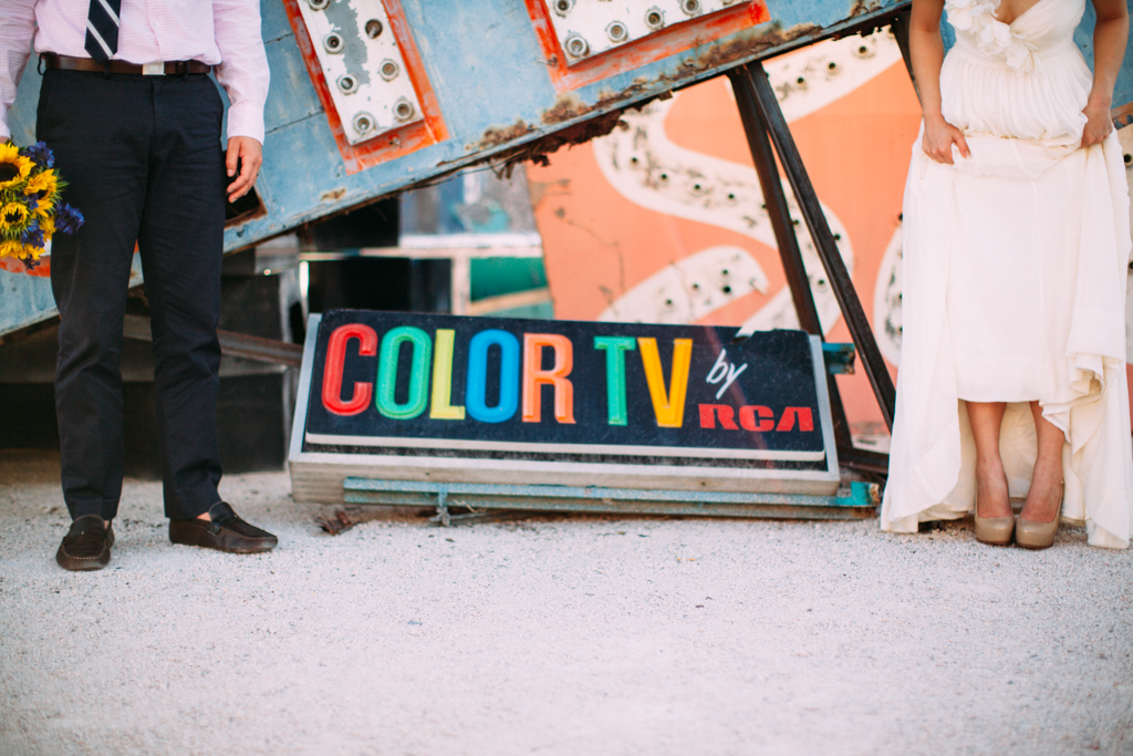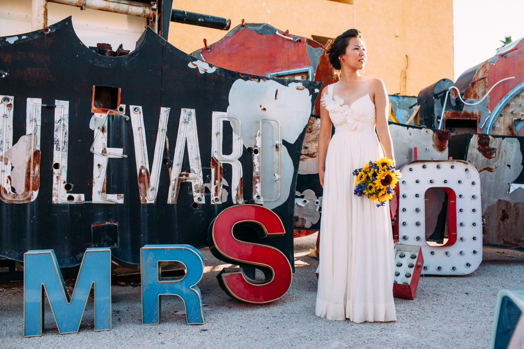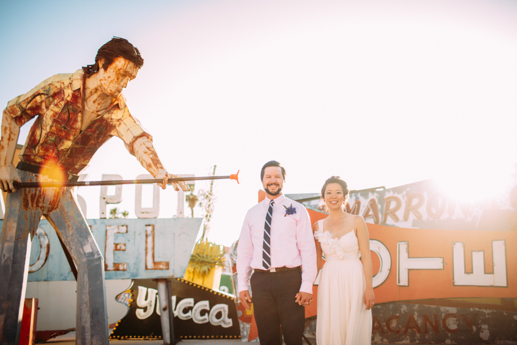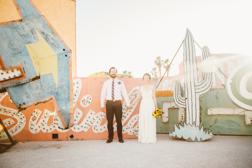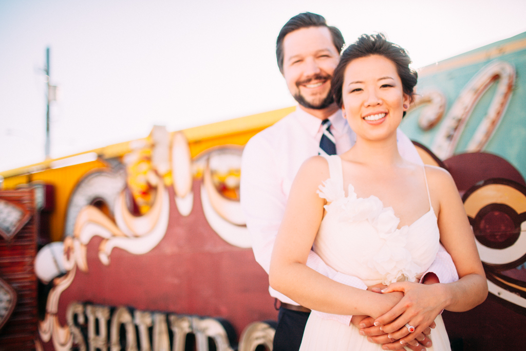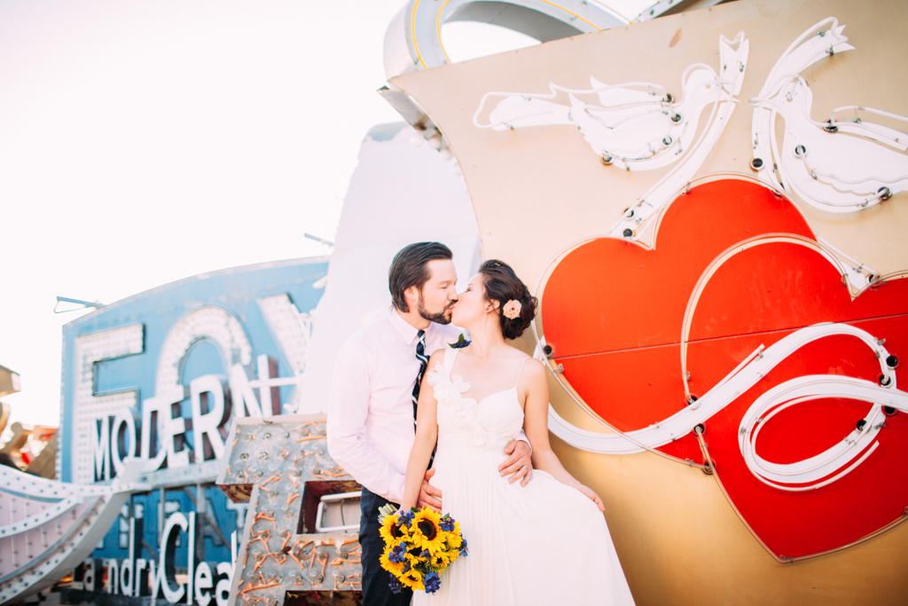 Going for a different side of Las Vegas for their post-wedding photos, they headed downtown with Cluney Photo to do a shoot at the Neon Boneyard for a touch of old Vegas. Classy, personal and packed full of huge smiles — pretty much the perfect Vegas elopement. Thanks for the peek in Hanna and James!