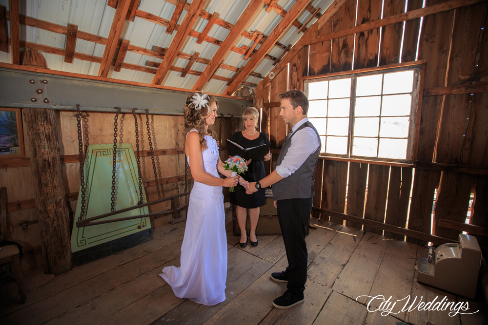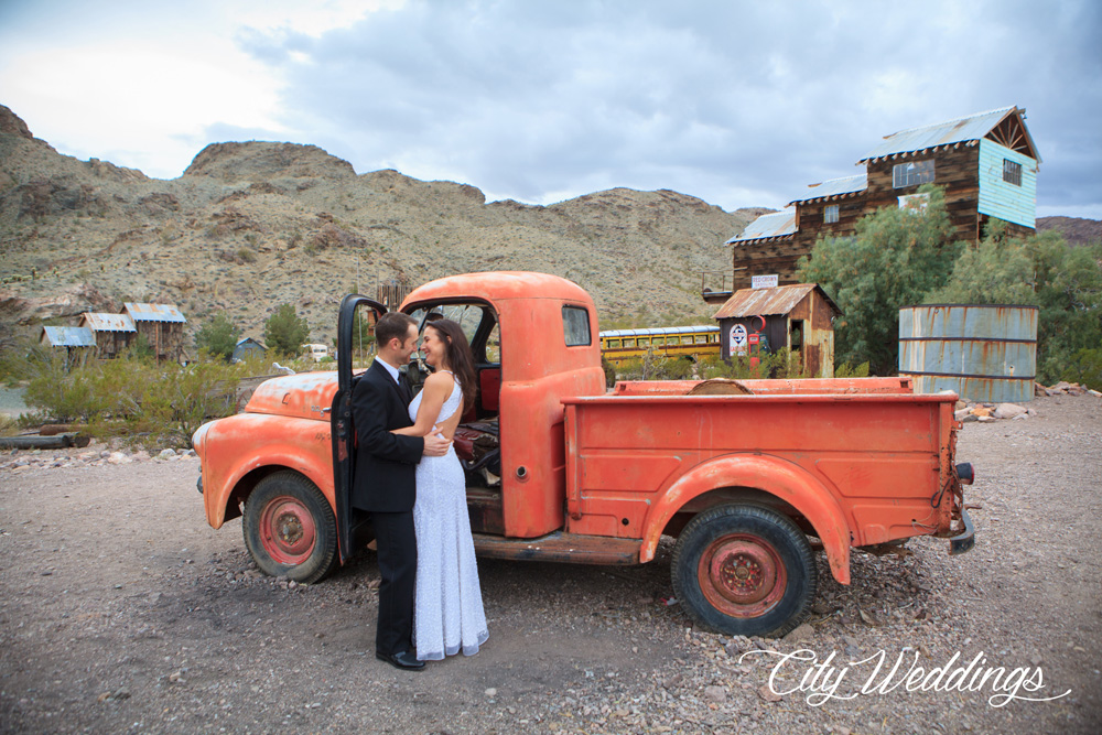 City Weddings provides affordable all-inclusive packages at Eldorado for elopements and small weddings, and can make sure your wedding goes smoothly and easily. No small feat for what is effectively an authentic abandoned mining town in the desert! Their packages include transportation for up to 50 guests, photography, a minister and ceremony and even a small post-ceremony celebration package before you head back to the glittering lights of Las Vegas.Â