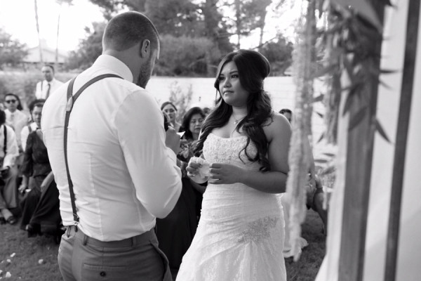 So many of you find Little Vegas Wedding because you are searching for the perfect setup for a wedding at a private estate or mansion. Well today is going to set the bar pretty high for backyard weddings. Geela and Kiel’s glamorous wedding took place in a tent, if you can believe it. DIY and professionally supplied decor made the magic happen. Amazing rustic tablescapes and elegant detailing elevated this wedding from lovely backyard affair to full-on luxurious Vegas wedding for them and 80 guests.