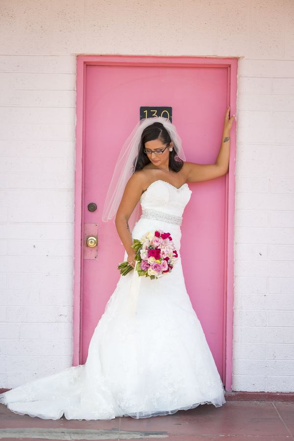 Holly and Chris are a couple who met through work and decided to get married in Las Vegas because they wanted “a place our guests would remember,” in addition to their wedding. Their wedding day looked like an absolute blast, from the sweet first looks Holly had with her dad and her husband-to-be, to the retro-Vegas shots at the Fun City “pink” Motel which coincidentally matched their wedding palette! Blush pink and gold created a modern, airy and fresh atmosphere at both their ballroom ceremony at Mandarin Oriental and the reception that followed at Joe’s Stone Crab. Simply gorgeous.