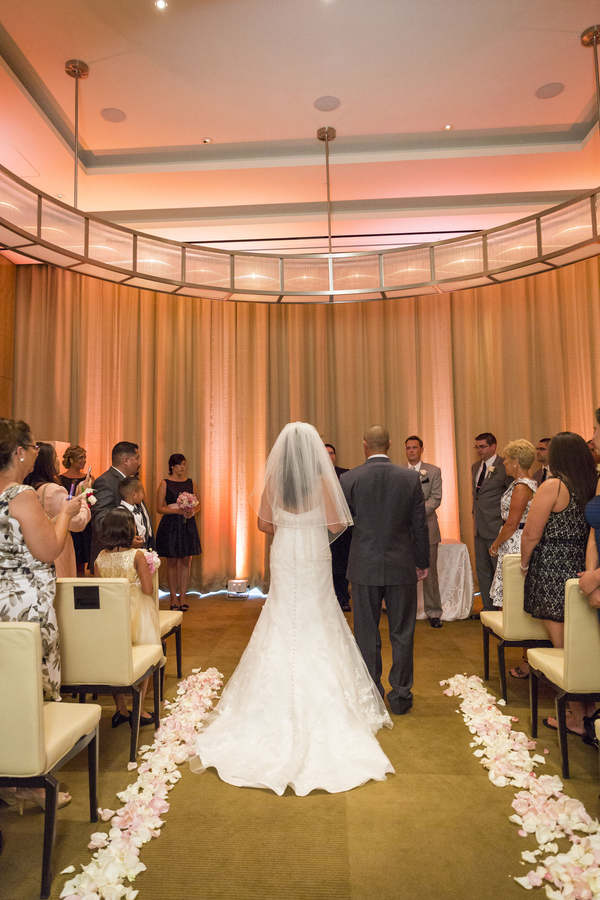 The ceremony was very romantic! It was a basic room but Mandarin is so beautiful that it didn’t need many decorations. I did have blush uplighting which made the room pop! It was so pretty and flirty. I personally chose all the music myself. Chris and I love music and I knew I wanted something different and unique.