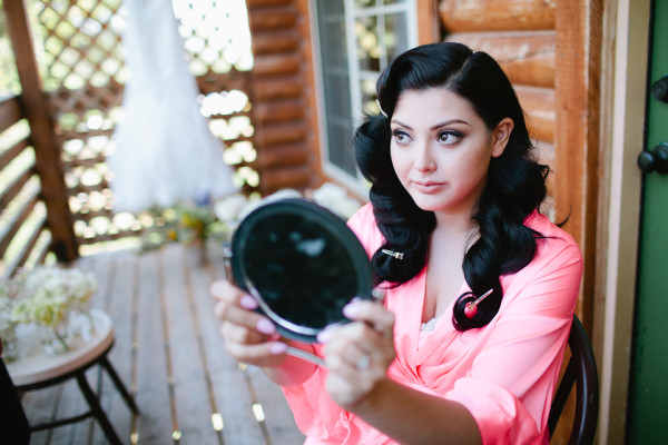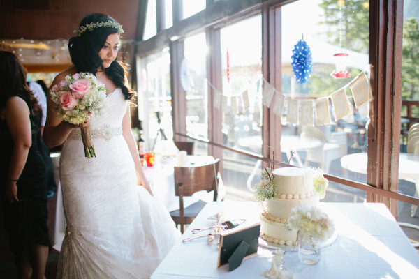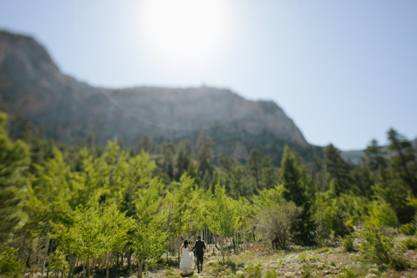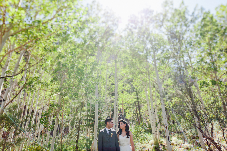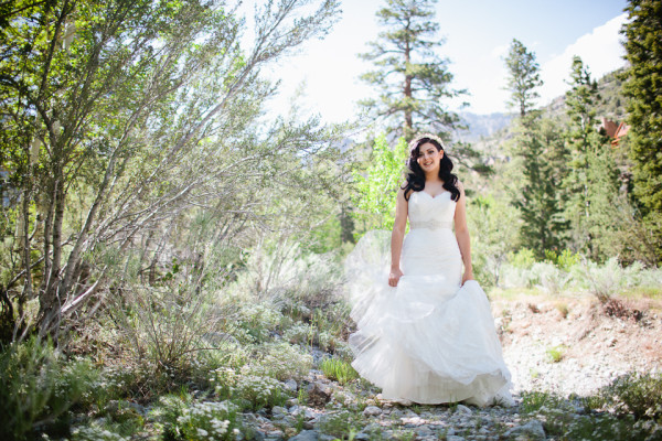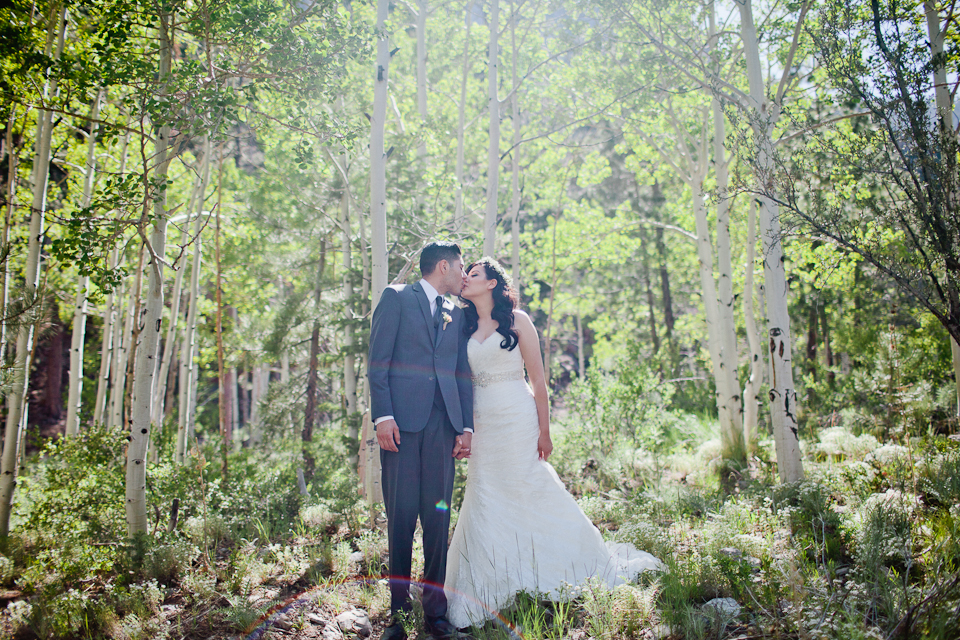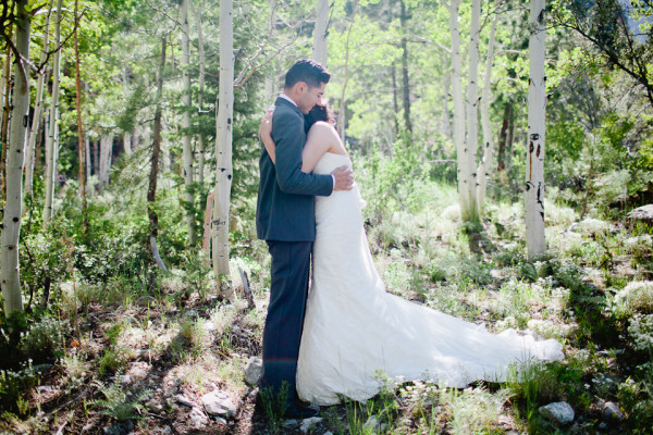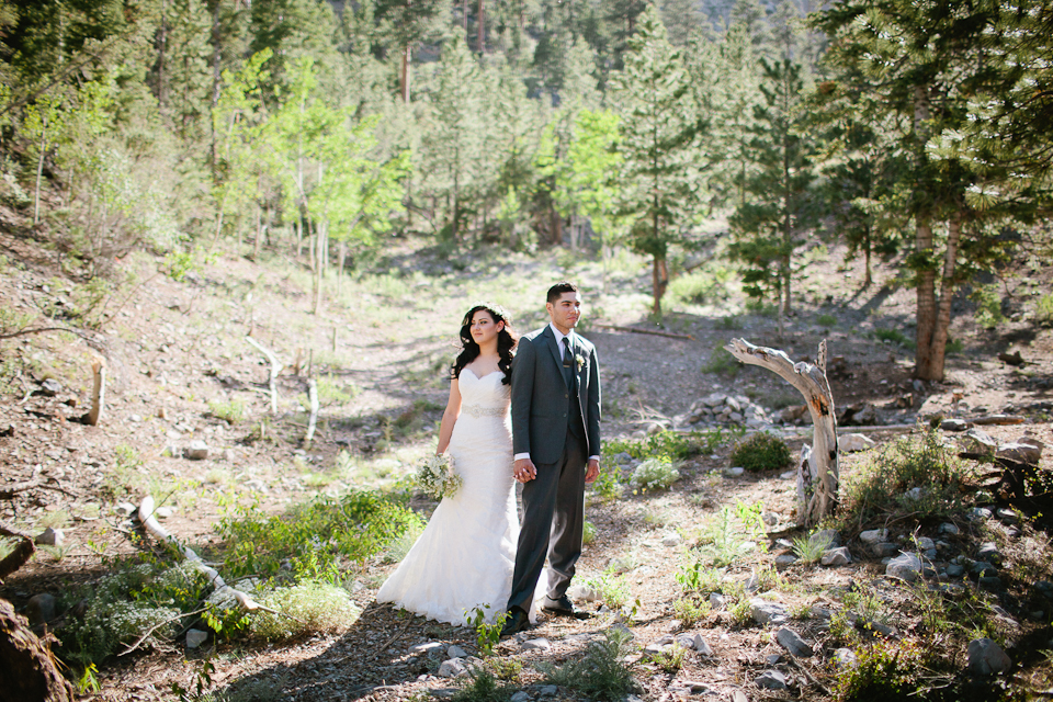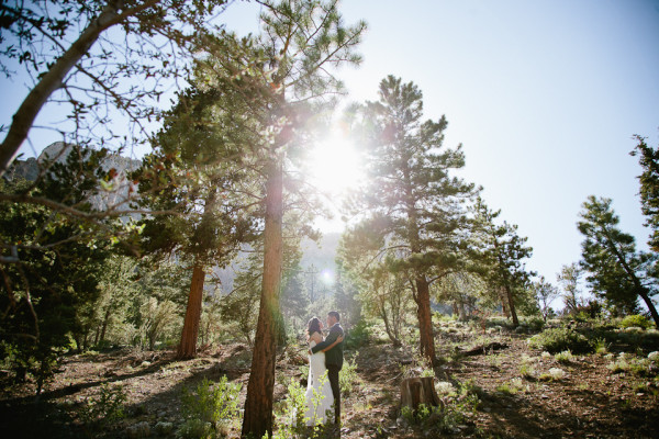 Mount Charleston is, in a word: magical. The mountainous setting and lodge-like atmosphere are a world away from the Strip of Las Vegas…but not a long drive away. Brenda and Johnny held their casual rustic wedding on the mountain, opting for the surroundings of nature and trees instead of lights and busy Strip bustle. Personalized DIY projects and vintage touches created by the bride rounded out this warm, woodsy wedding.