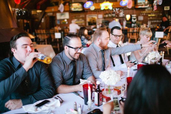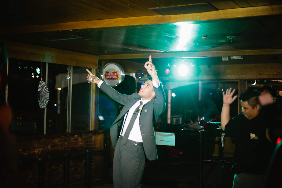 The venue included the ceremony space, the reception area, and a three-course dinner (which was delicious.) There were about six long tables set up for the guest and extra tables for the cake and gifts. The dance floor and DJ/karaoke were on the left side of the restaurant and the photobooth was set up on the right. I really enjoyed the reception because guests were able to hang out on the patio outside and dance inside. Overall it was a fun day which was exactly what we wanted.