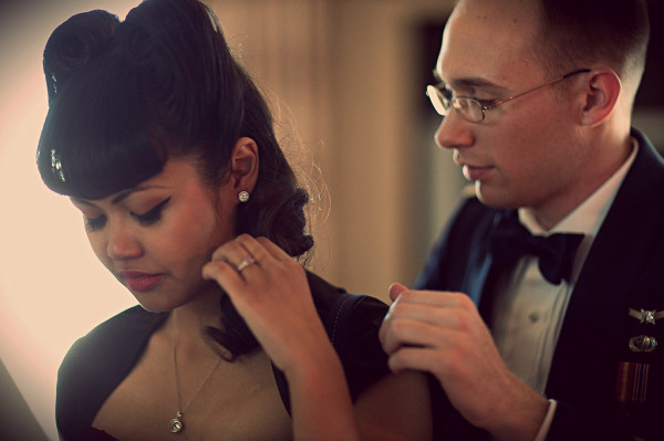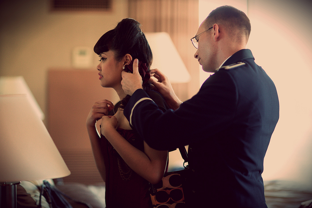 Initially, we did want a big wedding but to due time constraints, we had to improvise a lot. We were originally going to plan for a courthouse marriage first then a big fat ceremony later (as many military couples do), but even that wasn’t doable with only 3 months of planning available. Due to the entire nature of the military as well as the downside of everyone not living in the same area, only immediate family and close local friends were invited. The wedding was small, yet we managed to pull through and create the wedding of our dreams with just 18 guests! Michael’s mother helped to create our dream day a much more intimate one by providing most of the decorations, as well as cake and champagne.