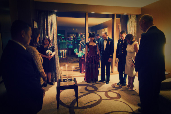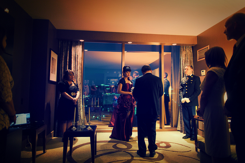 I was a Las Vegas local for nine years before I got married, and a lot of the dates that my groom and I went on happened while I was still living in Vegas. His grandparents live there as well, so it made it convenient for him to stop by and visit me (we had a long distance relationship). The location was convenient and definitely fit into our budget. Plus the city itself just has so much to offer in terms of venues, so why not get married in one of the wonderful resorts? We chose to get married at THEhotel at Mandalay Bay before it got replaced by the Delano. It was absolutely beautiful; the contemporary styling fit in with what we wanted in an in-suite wedding!