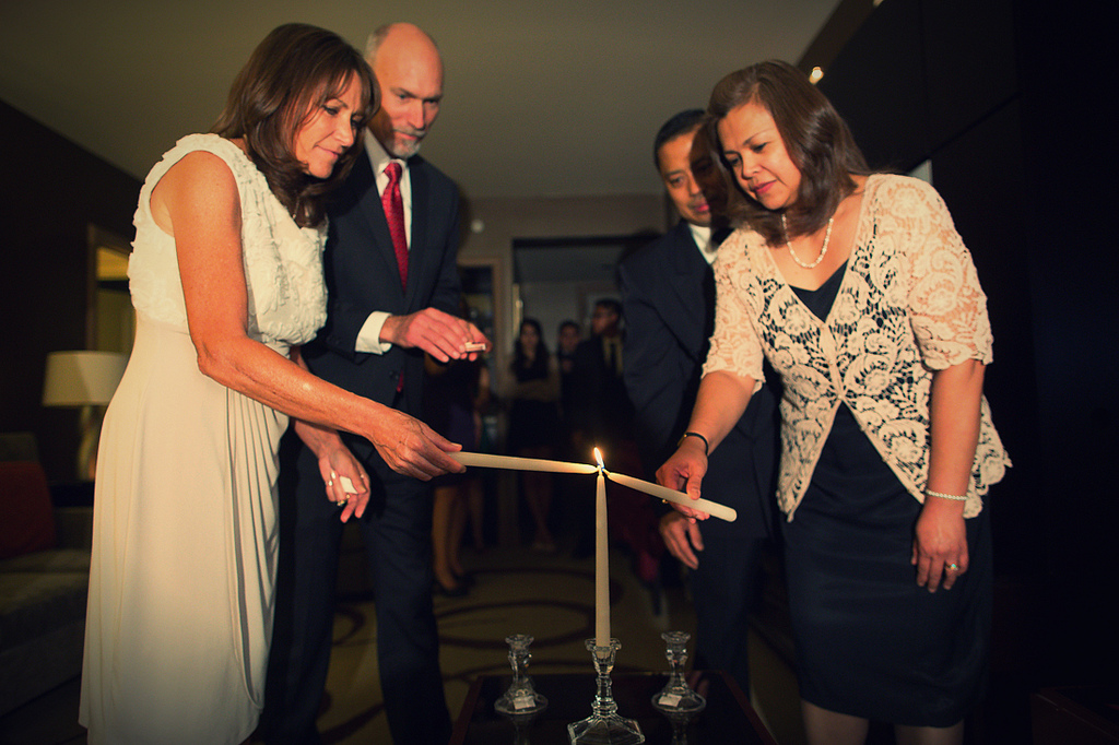 My family is Filipino, although I did not have my wedding inside a huge Catholic cathedral. So I couldn’t include many of the things that were typical of a traditional, Filipino wedding. However, both of Michael’s family and mine are born-again Christians, so we opted to do a unity candle-lighting ceremony instead. It brought together both families and was a nice blending of the cultures.