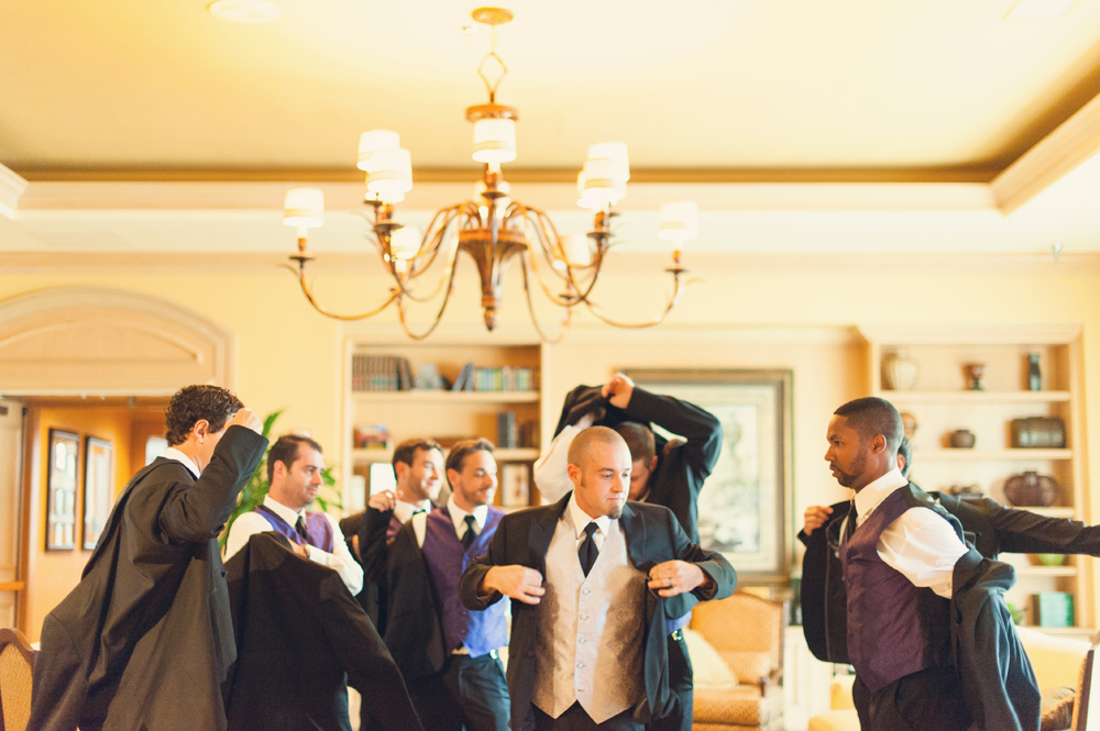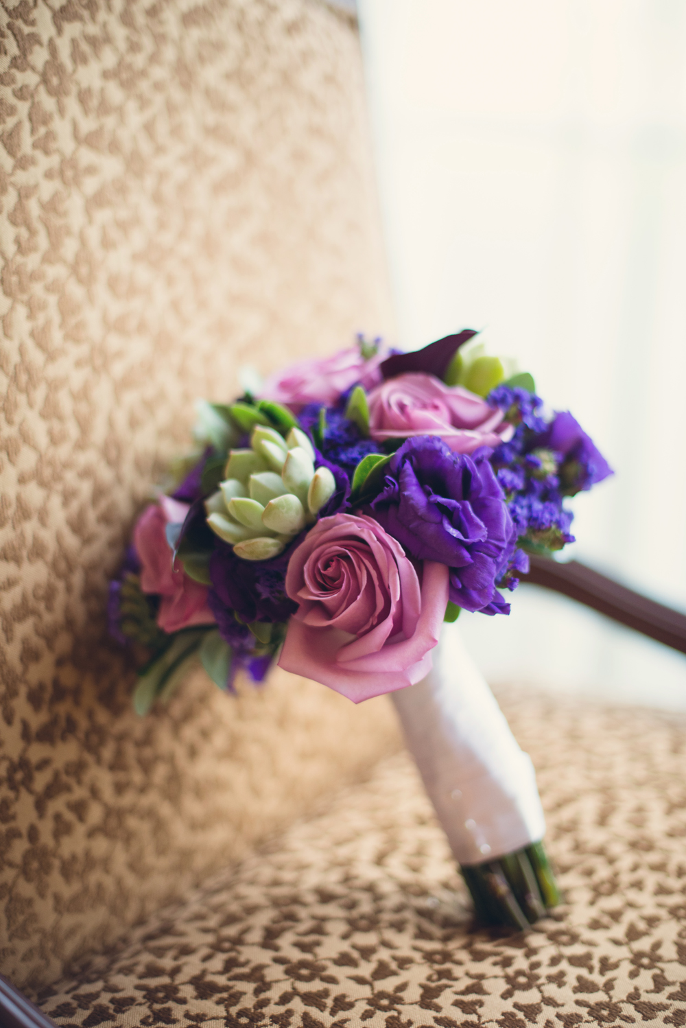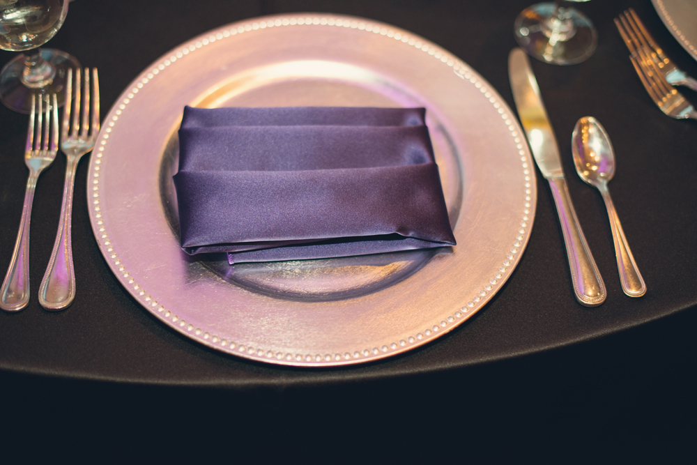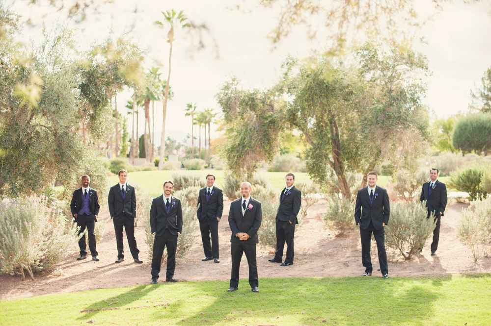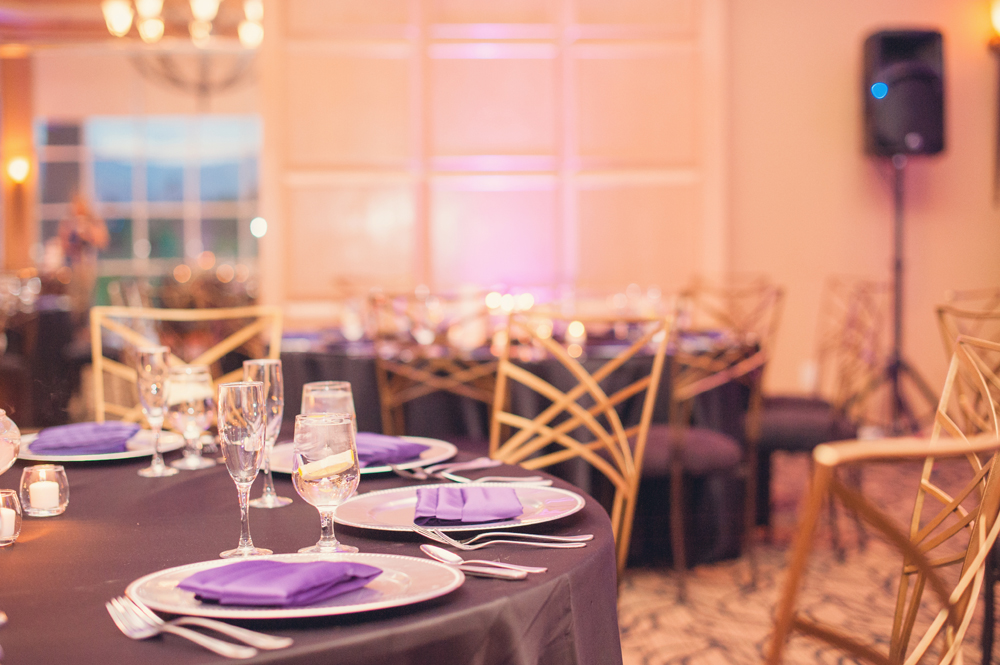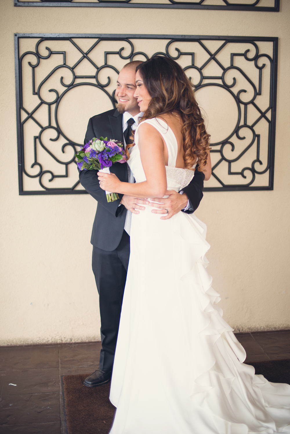 Josh and Stephanie chose the perfect venue for their modern, yet traditional wedding: Canyon Gate Country Club! The sweeping views and gorgeous ground were the perfect complement to their purple-hued wedding day, a one-stop destination venue for them and their guests. Romantic candles and roses, purple uplighting and a beautiful view from the ballroom completed this gorgeous day. I love that the couple chose to have breakfast together the morning of the wedding, too. A lovely moment of calm in what was sure to be a busy day!