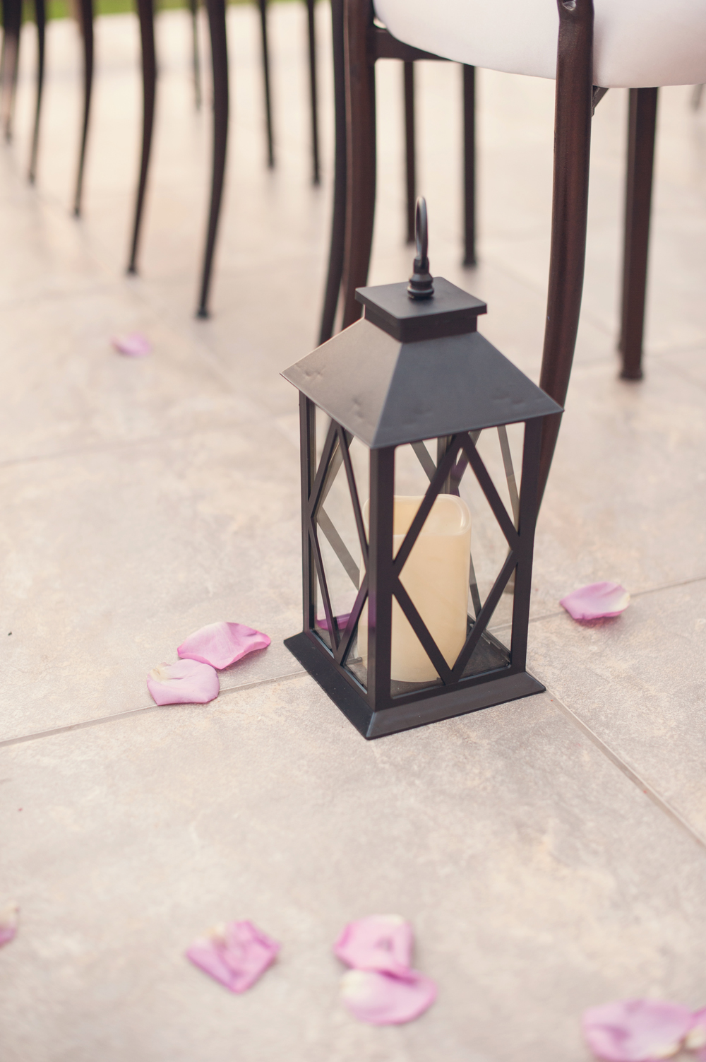 We kept the ceremony short and sweet — it began at 5:30 ended just before sunset. We then had an hour long cocktail hour before our reception. Canyon Gate let us pick the location out of two available gazebos, as well as the colors we wanted the seats and overhang to be. We tried to save on flowers so the only ceremony decor we had that Canyon Gate did not supply was the flower petals on the ground and the lanterns placed at the end of the aisles.