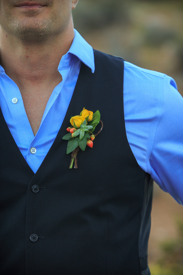 The couple paid tribute to Jessica’s parents’ marriage by replicating a photo taken at their 1966 elopement just ahead of going out to protest President Johnson’s arrival in their town. Their wedding photo is of the two of them holding a “Make Love Not War†sign and their special flower has always been a yellow rose, a flower incorporated into Jessica and Jason’s floral details.
