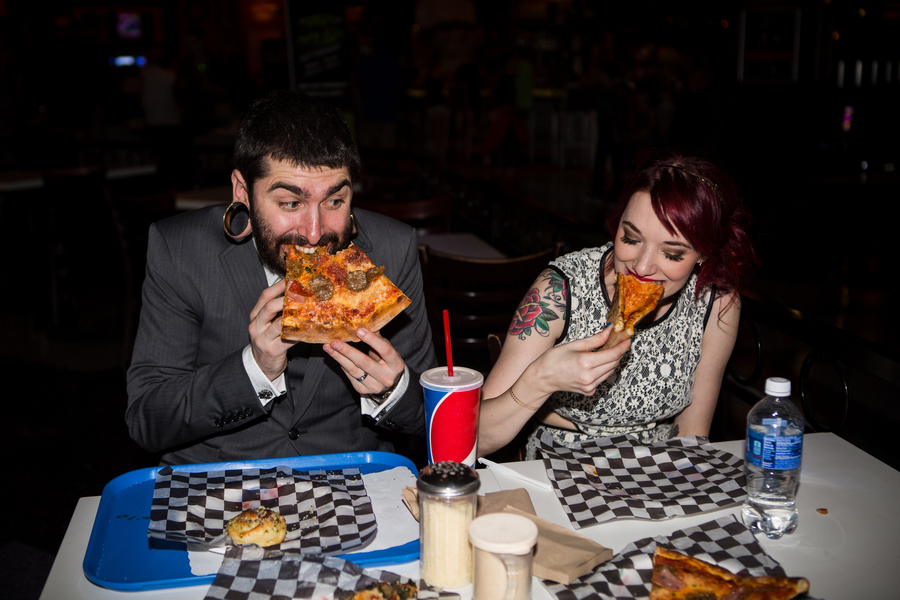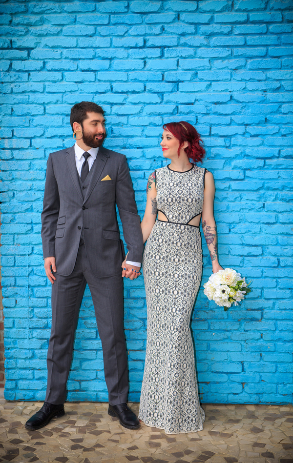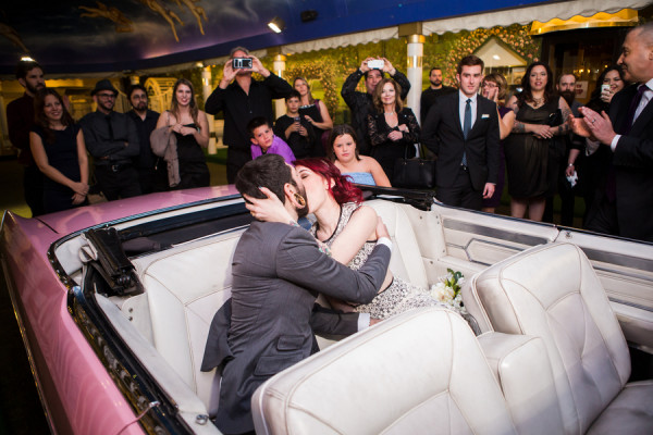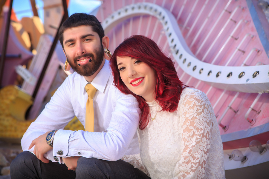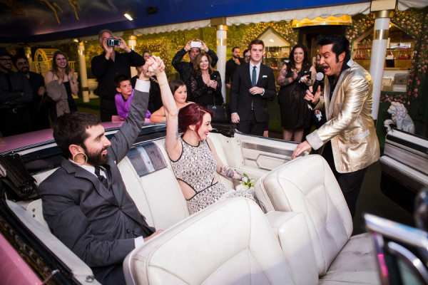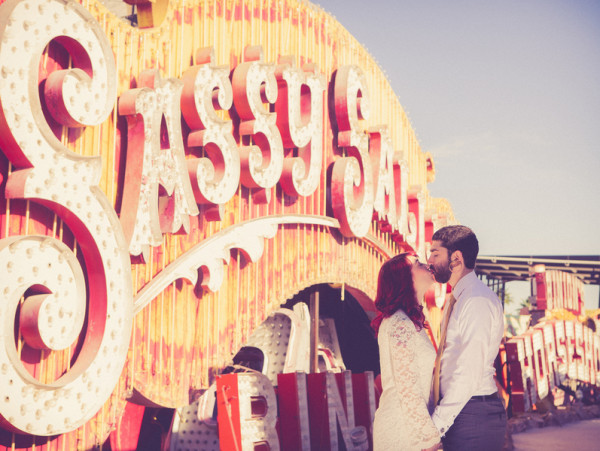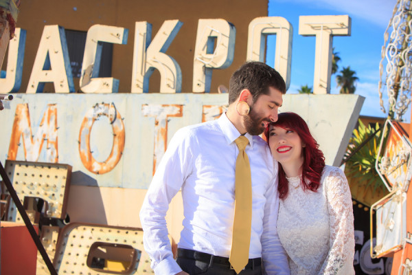 Britney and Jon decided Vegas was the perfect spot for a Halloween wedding — the anniversary of their first date! They didn’t go with an overt theme but spread the wedding fun throughout two days, including a drive-thru wedding in downtown Las Vegas and a bridal photo shoot at The Neon Museum.