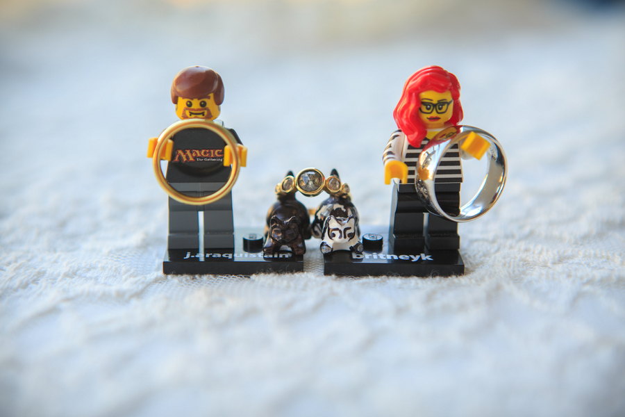 FLORAL . Silk by Gina Louisa Designs / BRIDAL FASHION . dress – Max Maxi dress by Boulee Designs shoes - Sam Edelman, jewelry + accessories - Kate Spade and Kate Szabone Jewelery / RINGS . Brilliant Earth / GROOMSWEAR . The Artful Gentleman / TRANSPORTATION . Earth Limos & Buses / CAKETOPPER . Lego by Minifigs.me