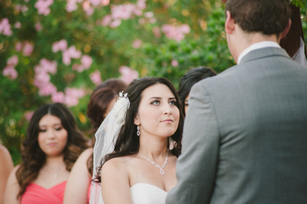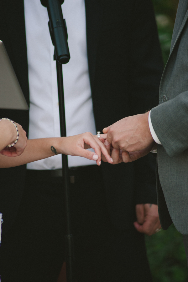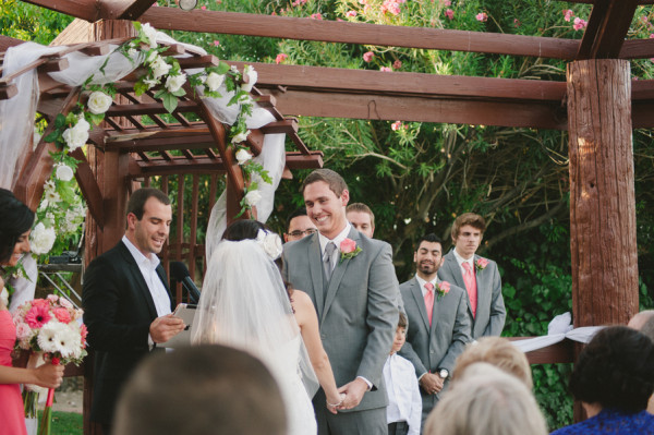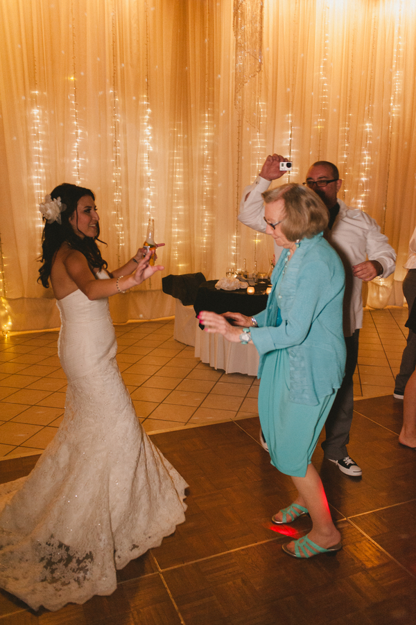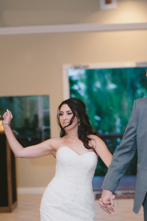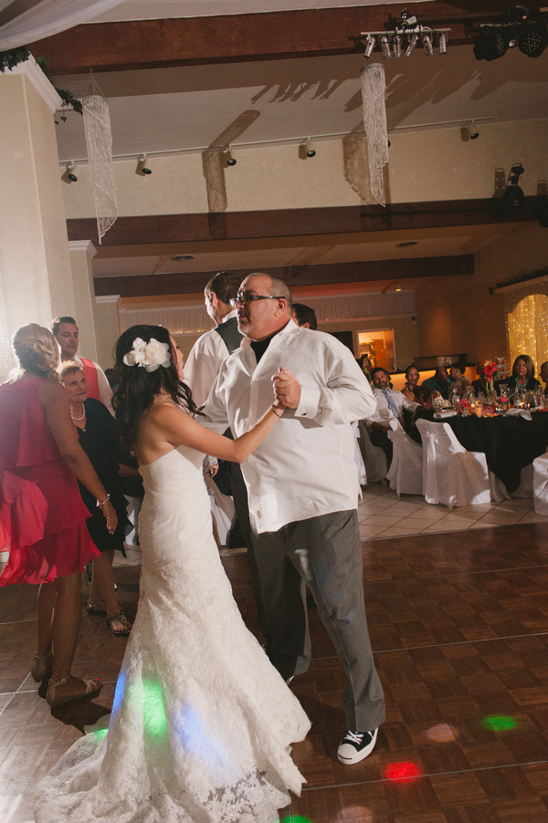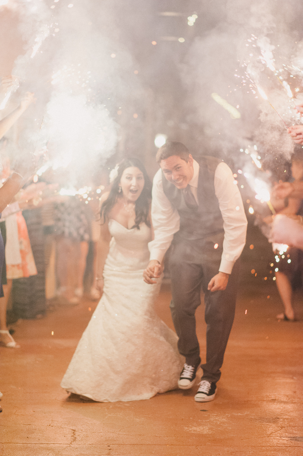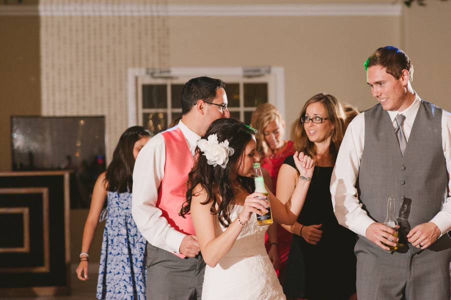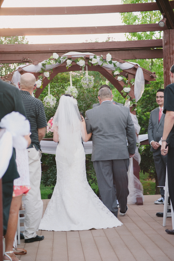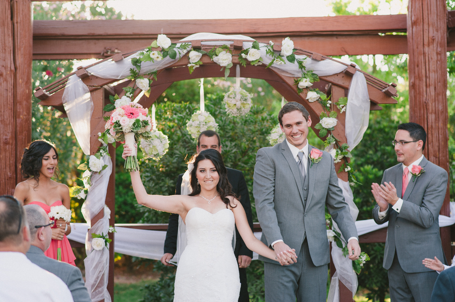 The ceremony was perfect. As far as emotions go the most emotional moment was the first look I did … not with my groom but with my dad. It was important to both my husband-to-be and I that we didn’t see each other until the moment I walked down the aisle. The theme I would call it shabby chic. Our colors were corals and creams with the guys in grey. We had chalkboard signs and flower balls and we said “I Do” under a big gazebo that fit all 65 of us intimately around sunset.