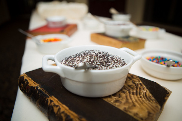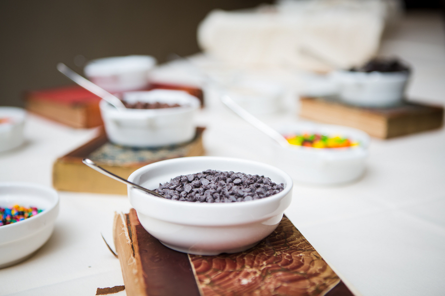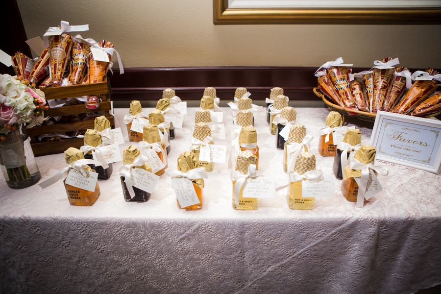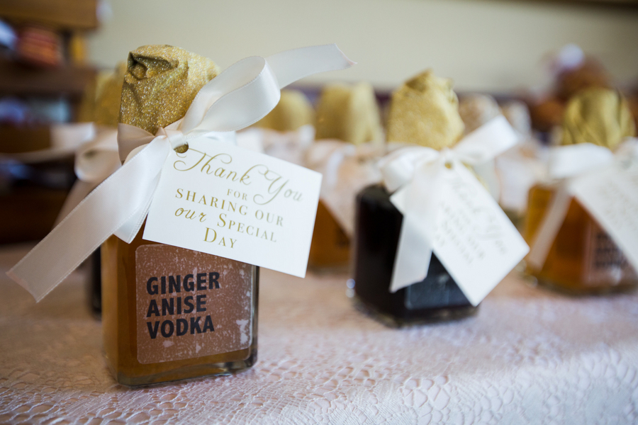 Jackie and John wanted their big day to be memorable and fun, however instead of making their wedding solely about them, this humble princess and her prince wanted to focus on the celebration itself and the important family and friends who were able to attend and join in the festivities. The horse and carriage entrance definitely made a statement, but Jackie wanted it because she thought it would be fun for the kids, who were able to pet Duke, the horse, and take rides in the carriage after the ceremony. Similarly, the ice cream bar after dinner was also selected with the kids in mind. Adult guests were invited to take home one of the infused vodka wedding favors that Jackie made herself.Â