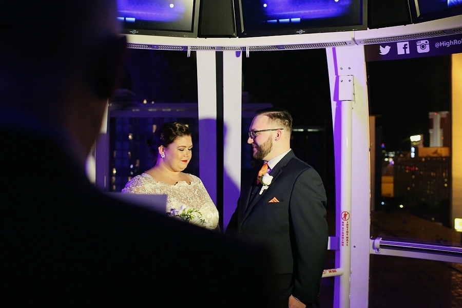 So how does Vegas tie in? The bride had entered a contest from Las Vegas Convention and Visitors Authority to win an “I Do Redo” on the High Roller in Las Vegas for 12/13/14 and they won! Included in the $14,000 prize were flights and accommodation for them and five friends, the ceremony and more, including: a rehearsal dinner at Joel Robuchon, beauty treatments at the Salon at Vdara, a Richard Petty Driving Experience for the gents and a post-wedding dinner at LAVO Italian Restaurant at The Palazzo and VIP table seating at TAO Nightclub at The Venetian.