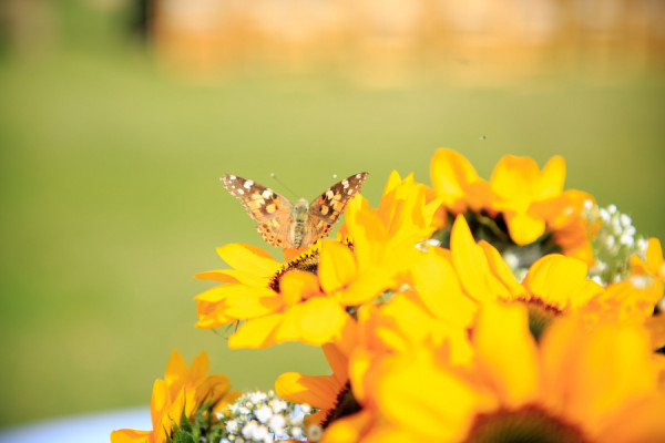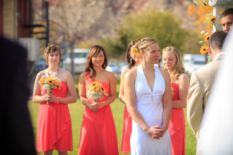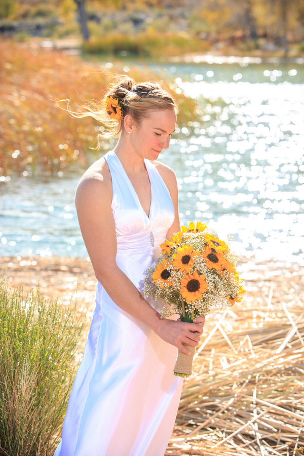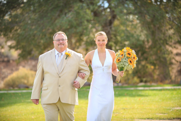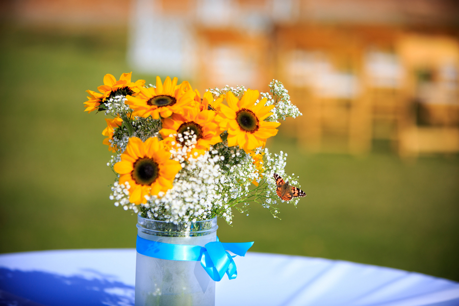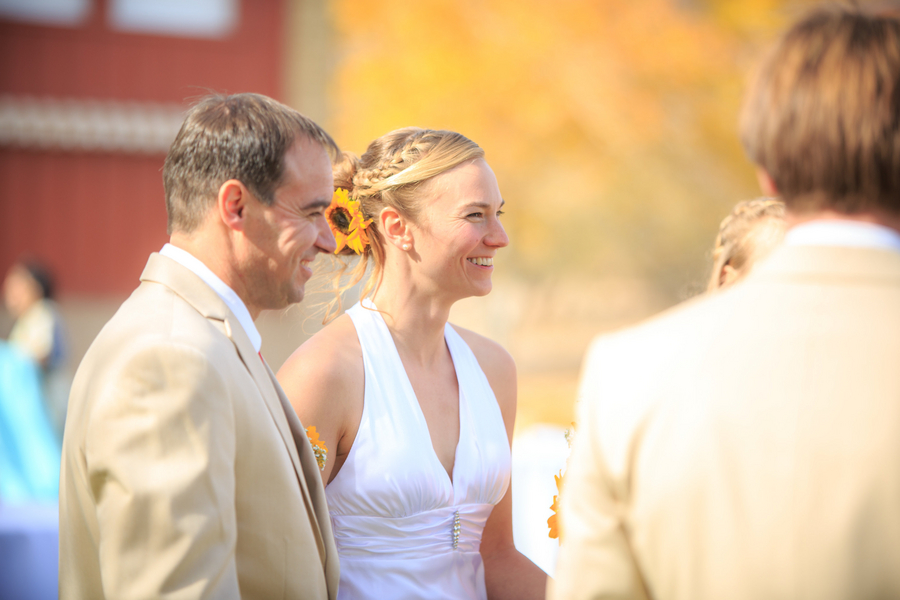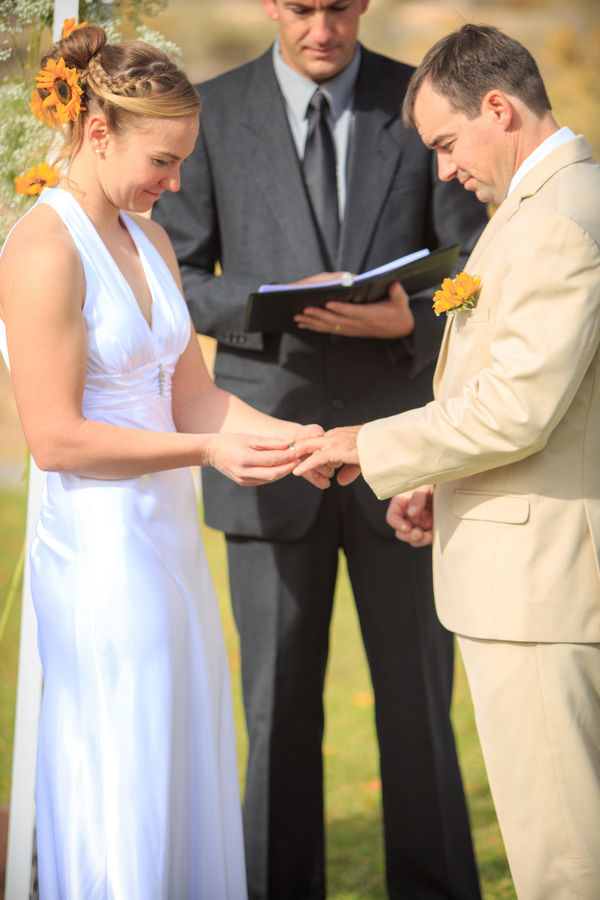 The ceremony was very simple and we planned it together. A good friend of ours, one who was part of lives before we started dating, married us. The theme was country rustic, with sunflowers, and my friend Andrea did an absolutely amazing job arranging all of the bouquets of sunflowers and decorating them on the altar.