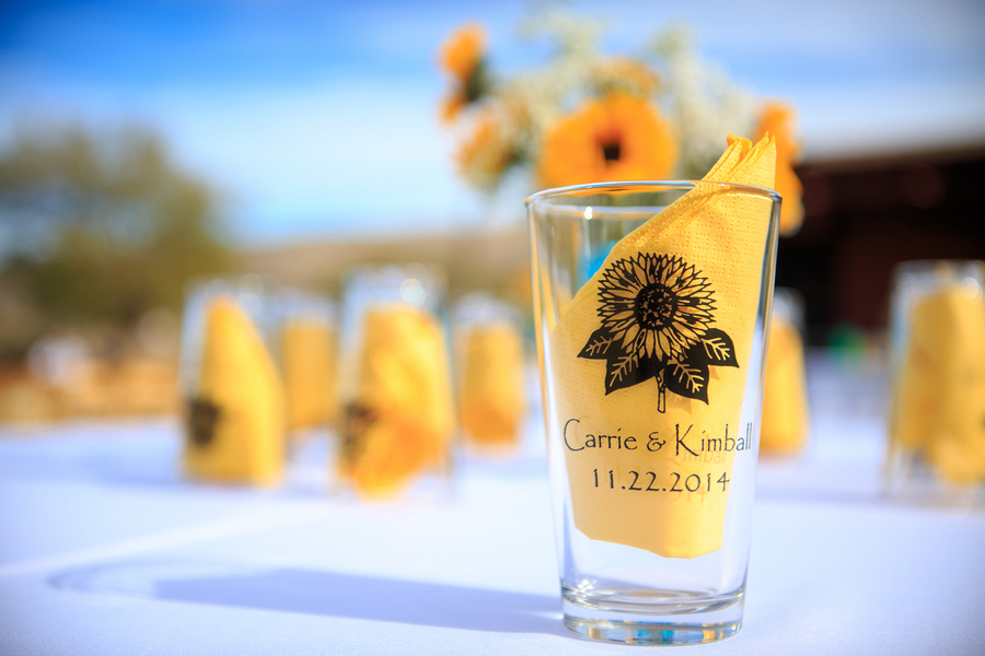 The reception was catered by Café Rio, because my fiancé and I love that place. Also, their catering prices are substantially lower than classic vendors. We had a four-piece bluegrass band play and had some large lawn games for the guests. I think day weddings can be kind of lame (as no one drinks quite as much as at a night wedding) so we had a “giant game” theme. Andrea and Mike Tomlinson made this awesome GIANT cornhole, with giant beanbags that you had to use some muscle to throw. There was also Jenga, giant Pick-up sticks and a few others. We had a photobooth with props that was really fun and the vendor created a book of all of my friends doing funny poses.