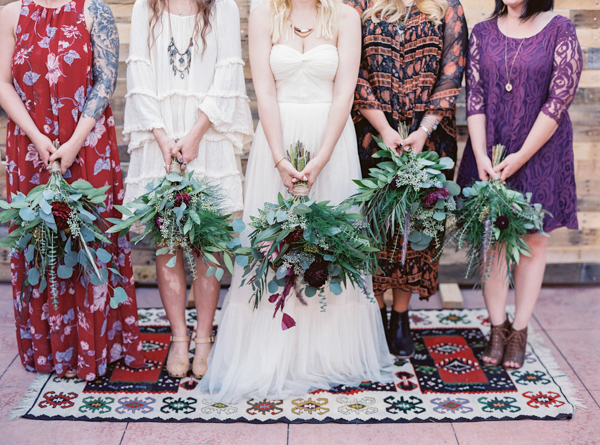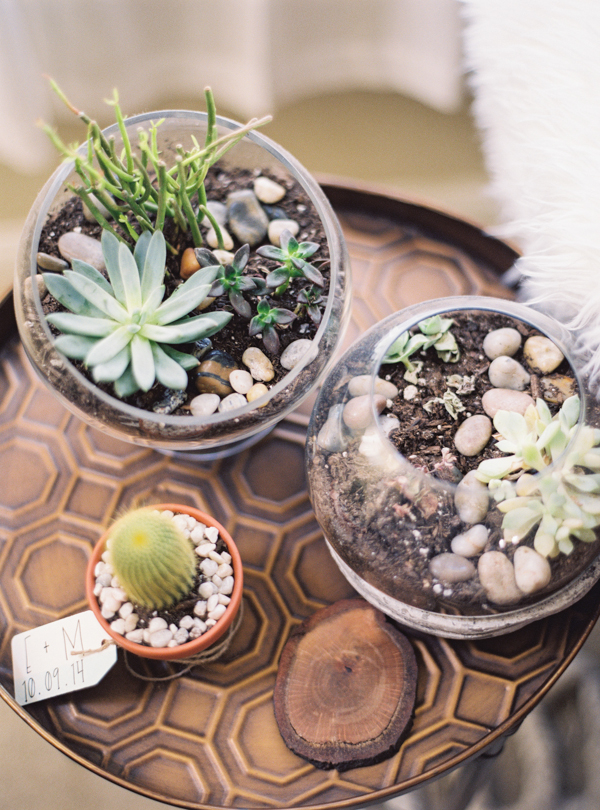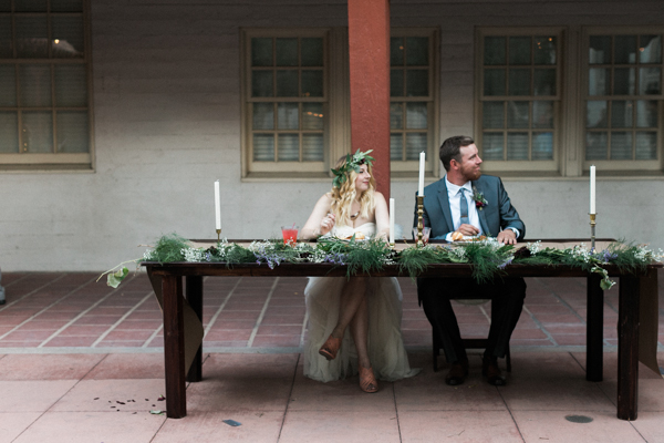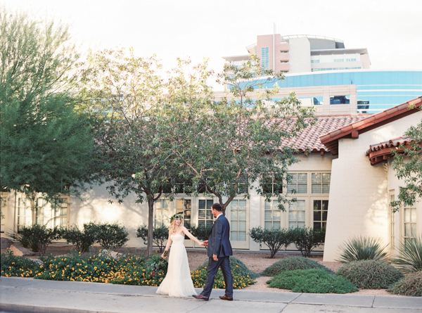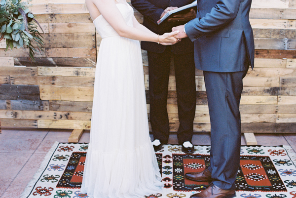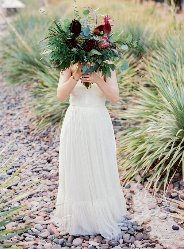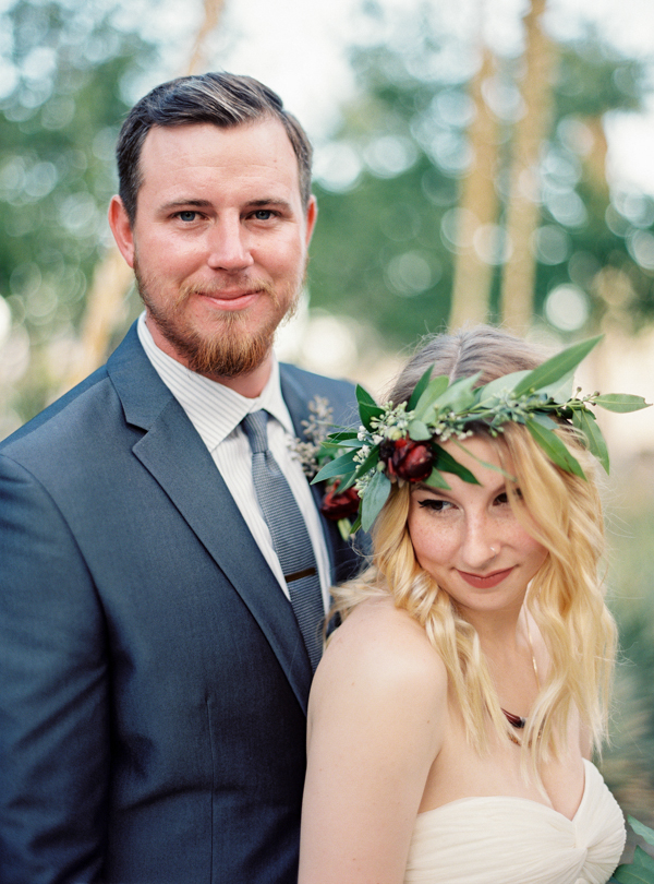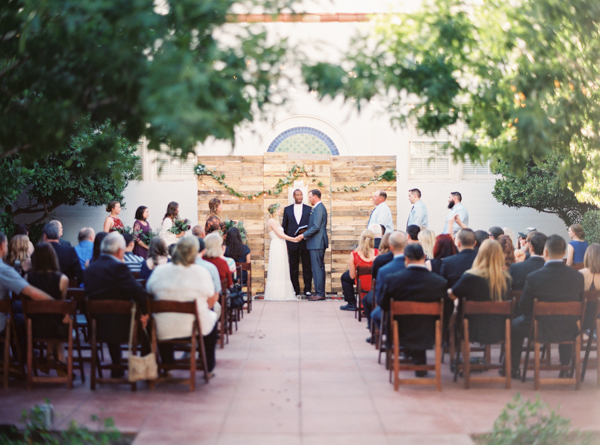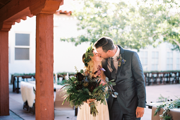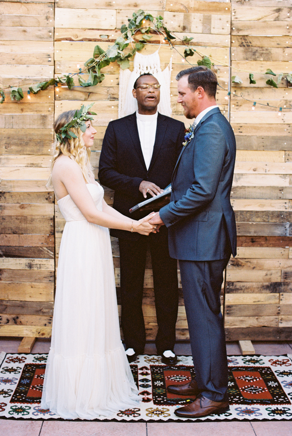 Opting for a bohemian, relaxed wedding with natural details, Morgan and Erick chose the perfect venue for their day: the Historic 5th Street School. Full of handmade touches (made by the bride and groom and purchased from Etsy artisans) this wedding featured earthy details and tones with a subtle desert vibe. Straight out of the pages of a magazine, florals were stunning as well, completing the lush natural feel at this eclectic downtown Vegas wedding full of personal details.