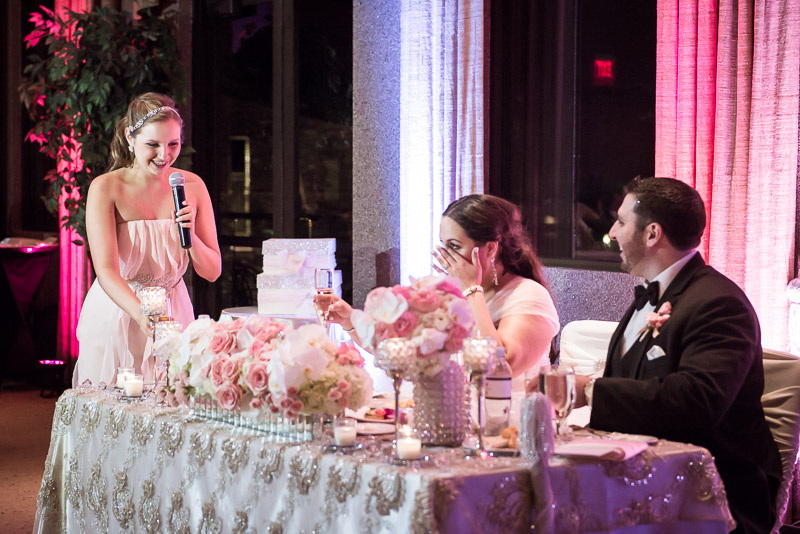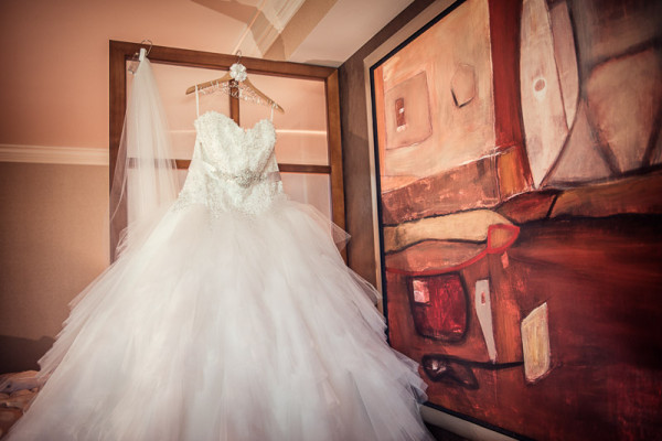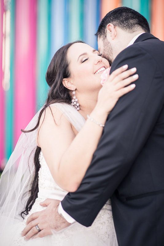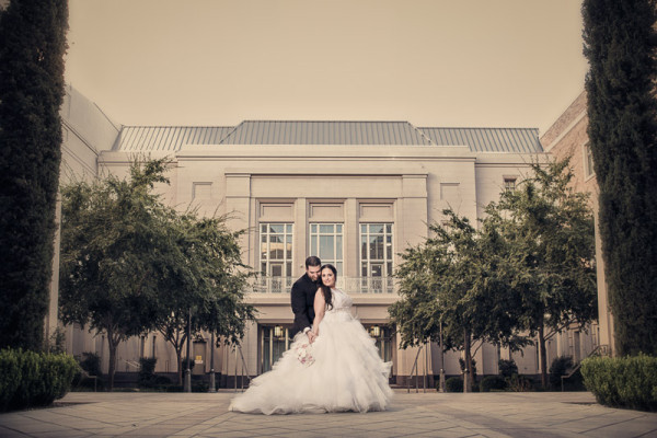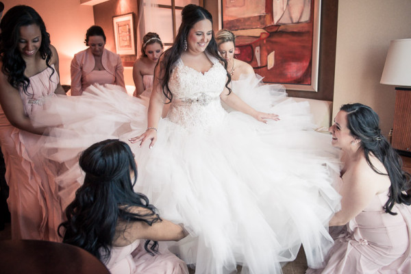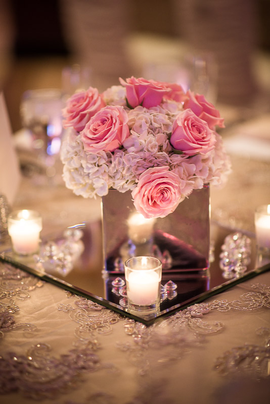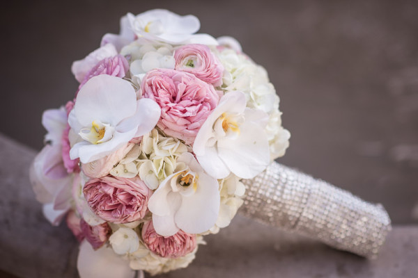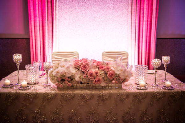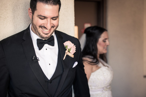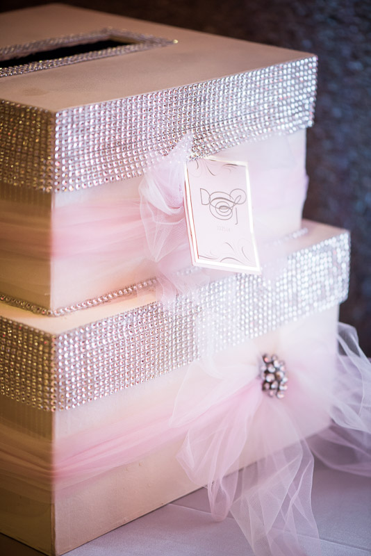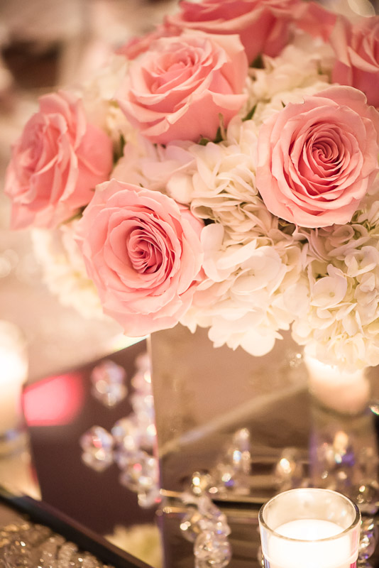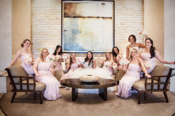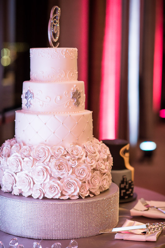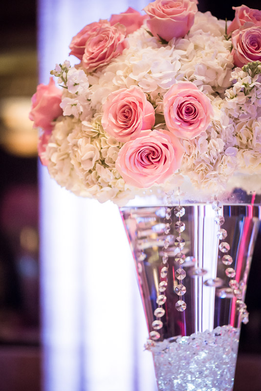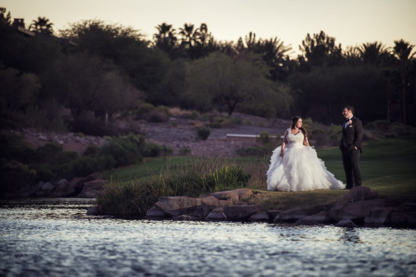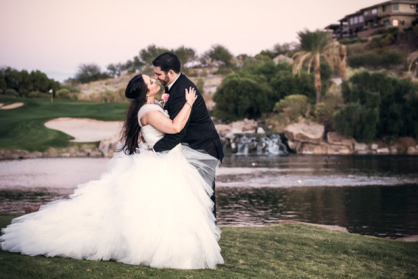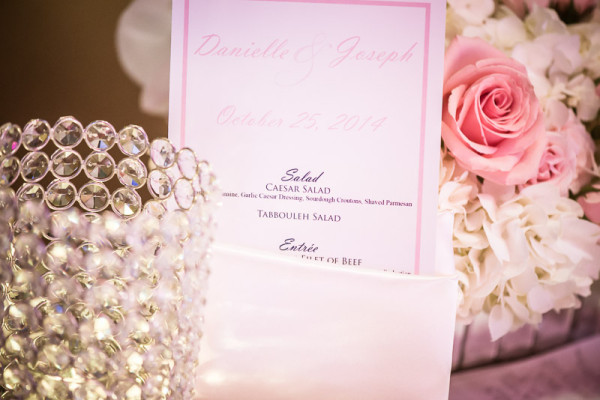 Opting for an autumn wedding, Danielle and Joey went chic with a country club reception venue. Danielle happens to be a wedding planner at one of the large Strip hotels, so no detail was overlooked. A pink and Champagne color palette kept the theme feminine, especially since it was paired with romantic roses and rhinestones all over. So pretty!