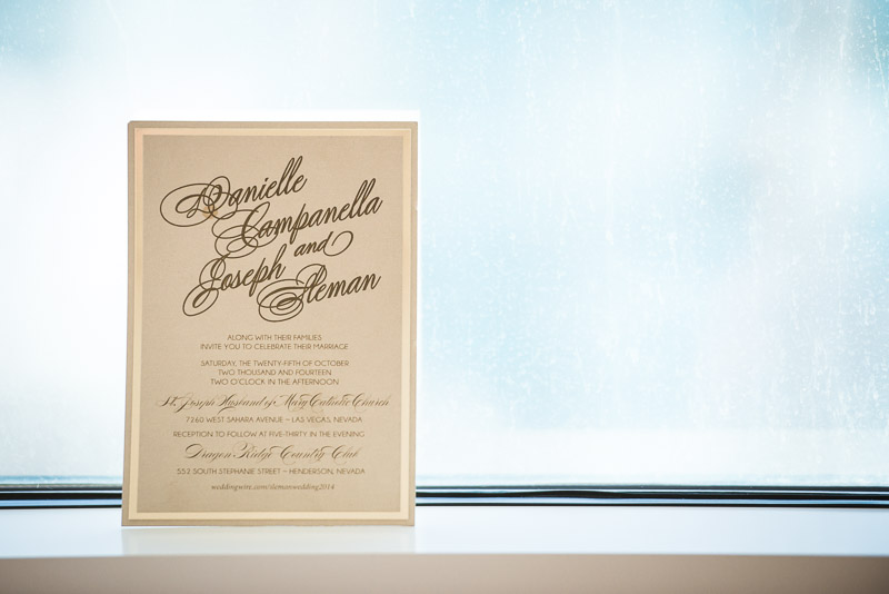 A Catholic ceremony transitioned into bridal portraits at some downtown Vegas landmarks before getting the night going at DragonRidge Country Club. Danielle and Joey’s wedding incorporated personal loves, cultural and religious history and, most importantly: friends and family. (Not to mention a few fun Batman details. How many can you see?)