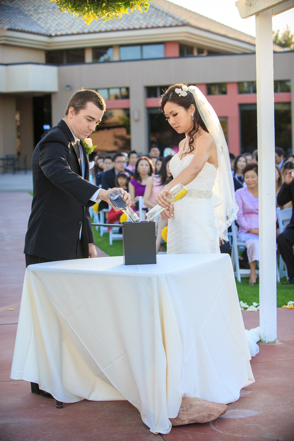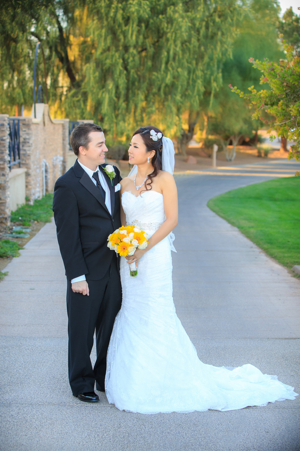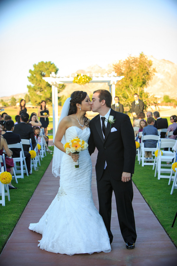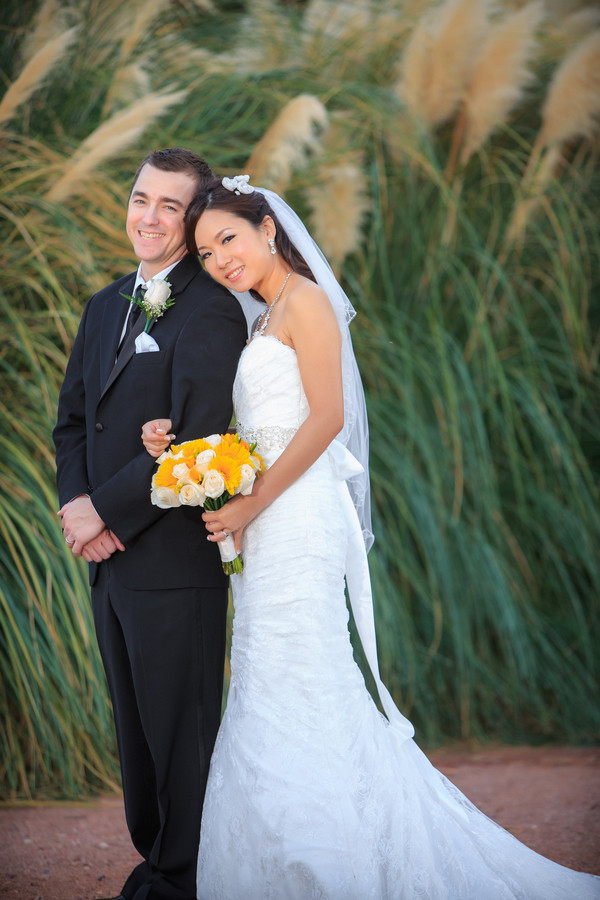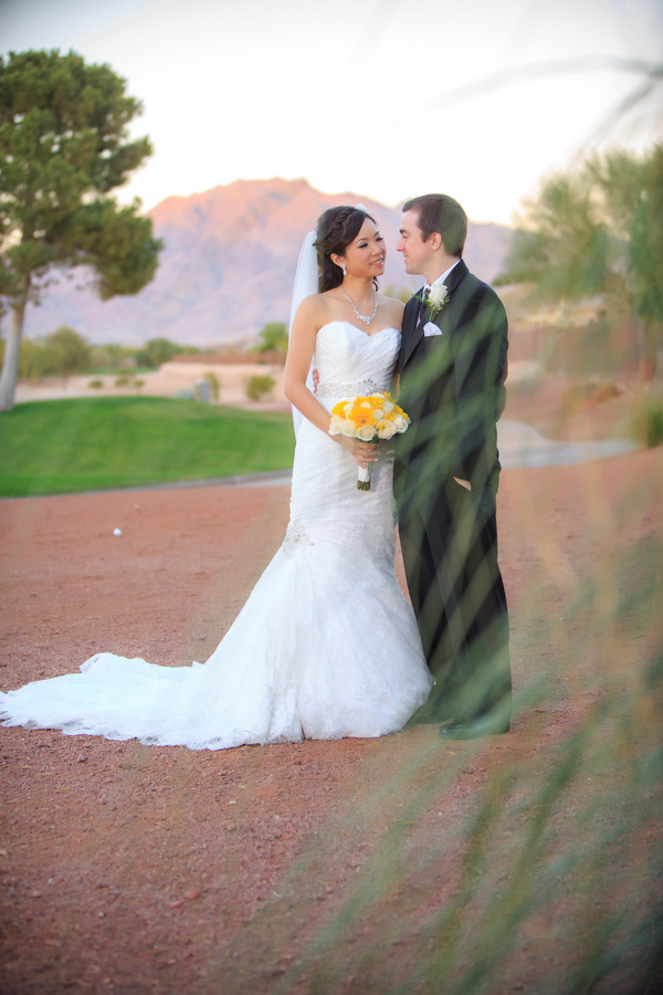 Tina and Kevin divided up the duties for their destination wedding in Las Vegas. She was in charge of co-ordinating family and friends travelling from far abroad to attend the wedding, while he took care of choosing vendors, venues and the details. They said it not only made sense for them as a couple, it brought them closer together during the process, too. Don’t you love that?