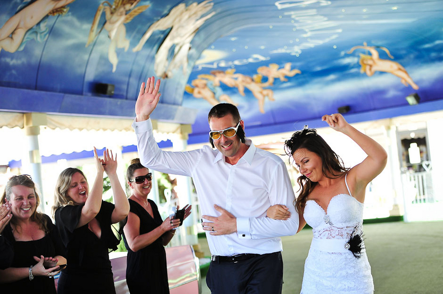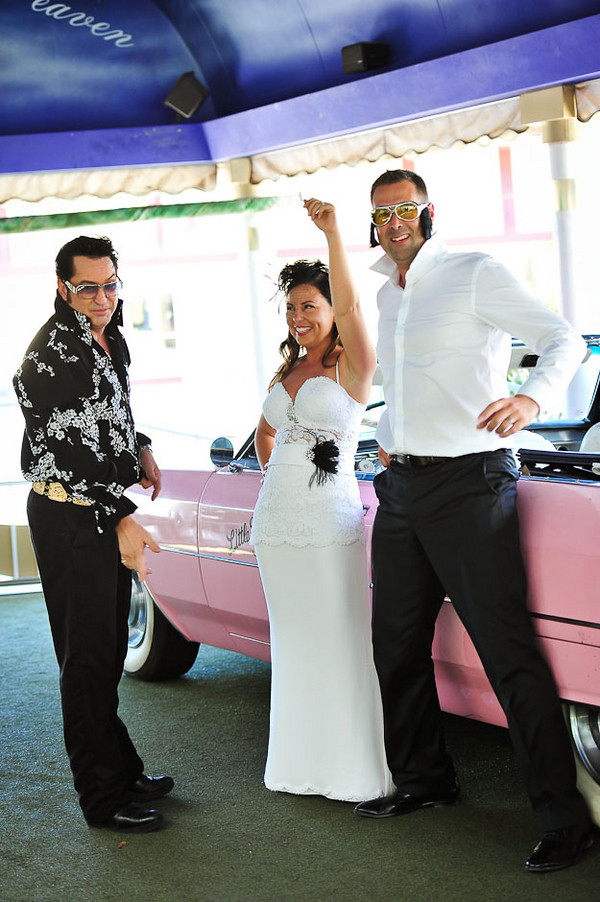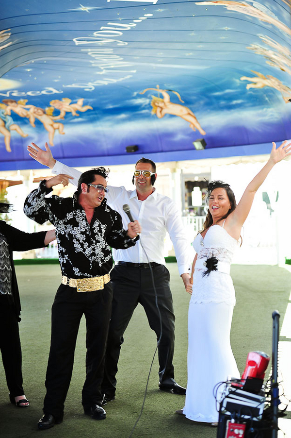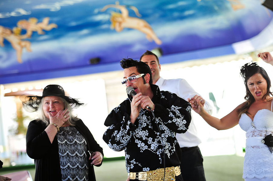 Christy and Nick had a double-header for their wedding day, choosing two iconic locations for their two sets of vows. I think that’s the beauty of Vegas —  you can have your (wedding) cake and eat it too. Desire an intimate desert wedding in a one-of-a-kind location with a customized ceremony? You got it. Also want a kitschy, over-the-top Elvis drive-thru ceremony? Yup, they’ve got that too.