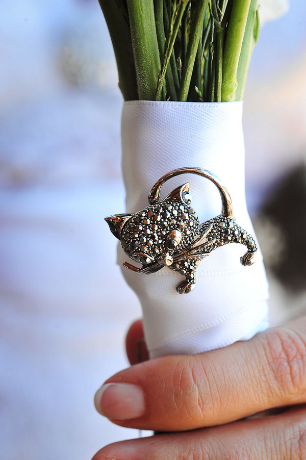 And despite travelling thousands of miles, they still managed to incorporate personal details into their wedding day. Christy’s dress was reworked by her sister from some lace their mother has had for several decades. The bouquet brooch? A nod to the couple’s cat, Sumo. The ringbearer was a stuffed lamb named Wilbaaa who has been Nick’s travel buddy for some time and also served as Best Lamb. He also sported an outfit created by Christy’s sister.