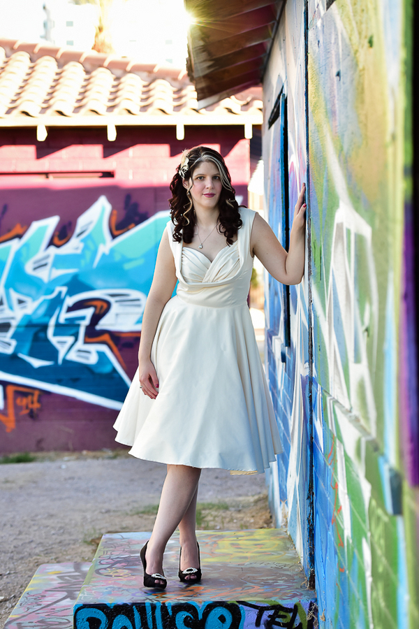 After the ceremony we took some portraits on the grounds of the museum and then headed off to the arts district for some more alternative urban backdrops for their photos. They really like the contrast of grungy non traditional backgrounds, with them in their beautiful wedding day attire. We had a great time before they headed off for a dinner reception with friends.