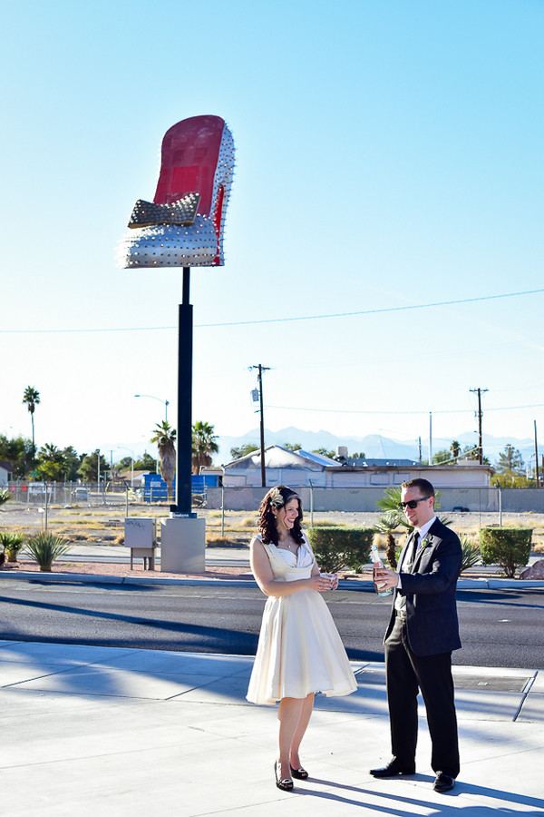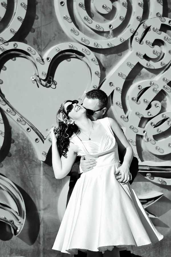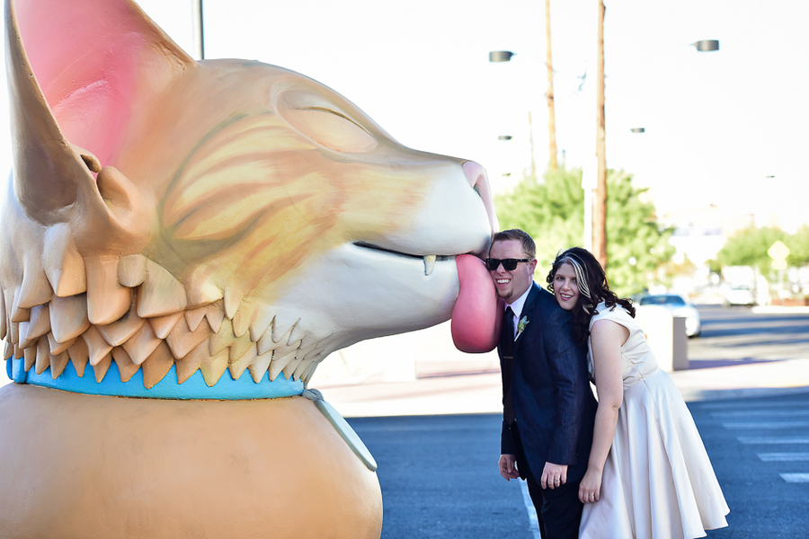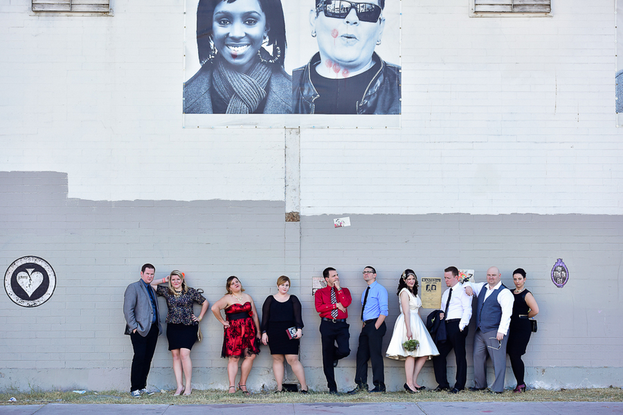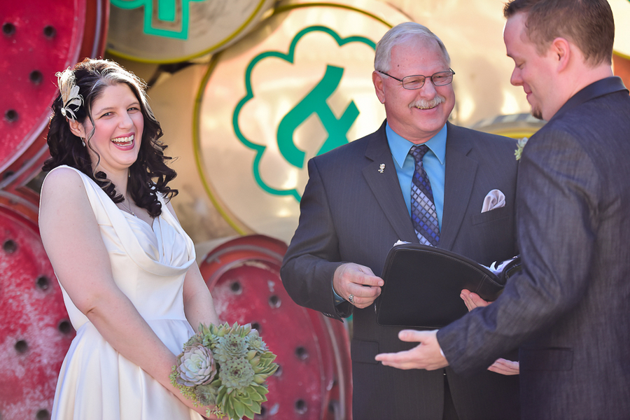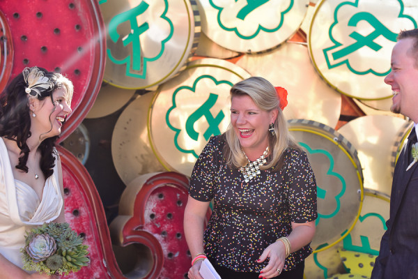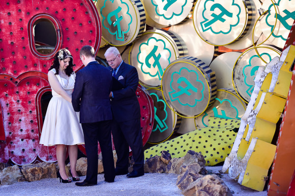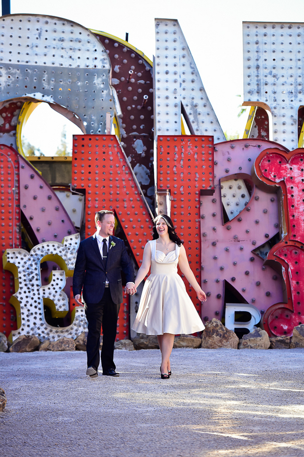 Brent and Leigh are a pair of booklovers who chose one of Vegas’s most historic locations for their ceremony: The Neon Museum. Nestled amongst the amazing retro signs, these two elected to involve their friends in their ceremony, having them read passages from favorite books and taking photos with them afterwards.