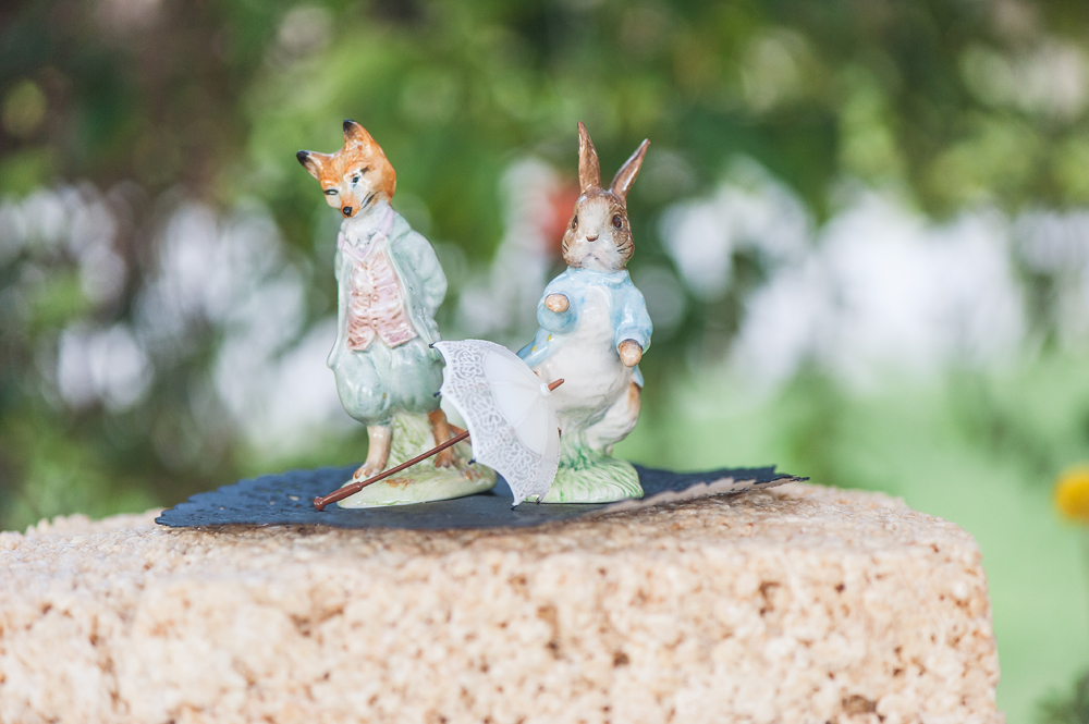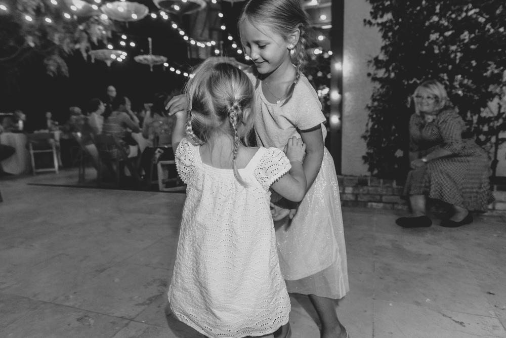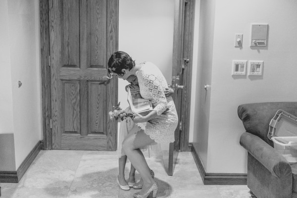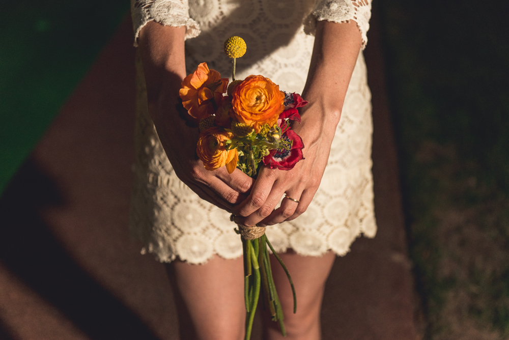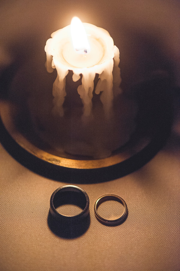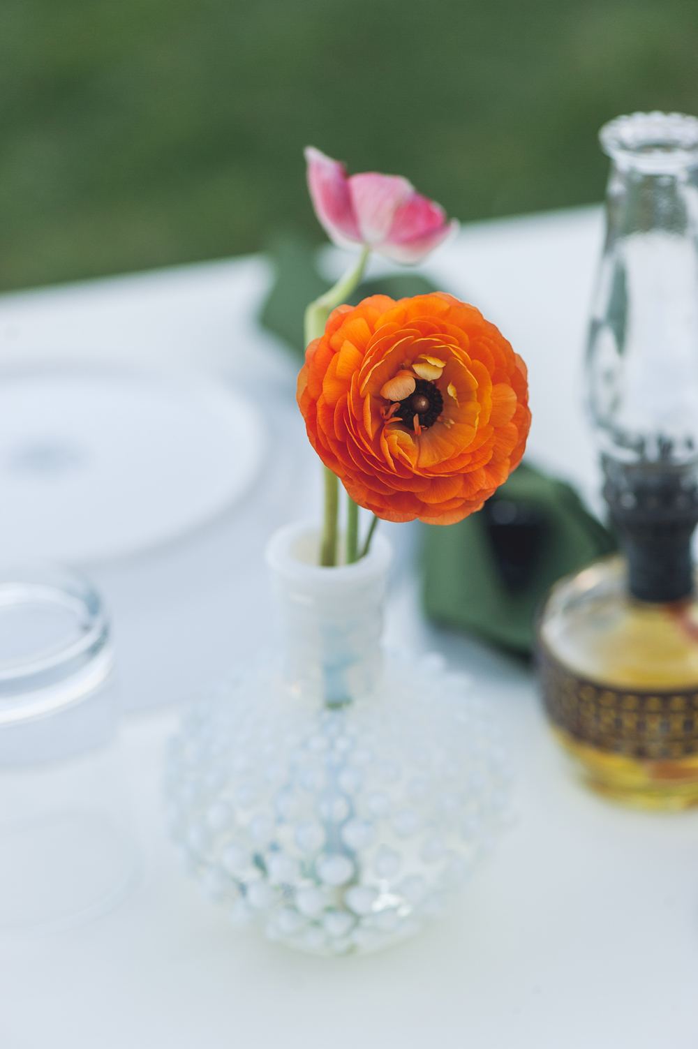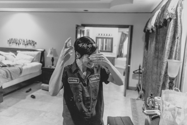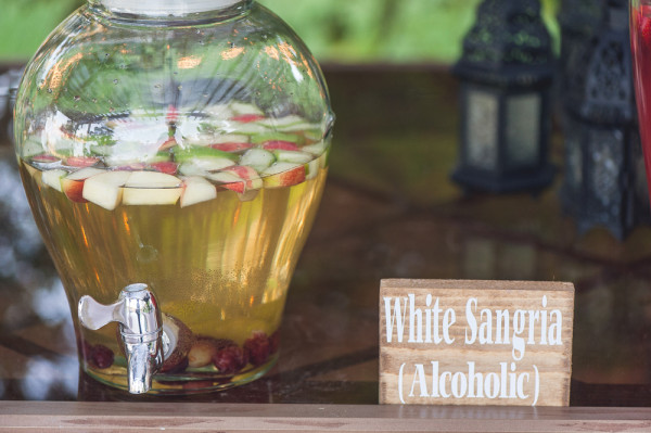 Lindsay and Ryan held their wedding in a fabulous villa they rented just for the occasion, using the opportunity to fill it with vintage touches. Going for an antique shop feel, the couple hung parasols and bistro lights above, and filled the tables with ornate frames and colorful glass vases.