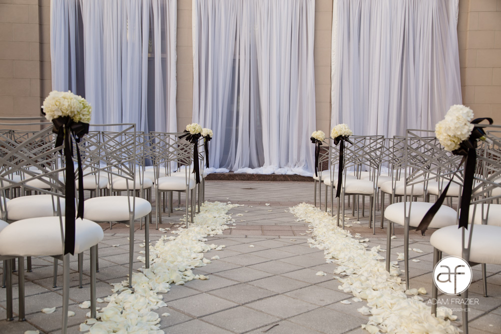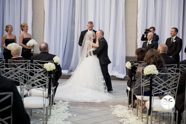 The ceremony was held in the courtyard of The Smith Center, which is a naturally stunning location and the perfect size for our wedding. With the addition of white flowers, white draping, and everyone we loved surrounding us it was everything we could have imagined and more.