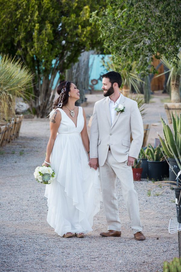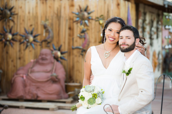 For East Coast couple Zay and Dean, a Vegas elopement was just the thing. Hosting a small guest list inside of the quaint chapel at Cactus Joe’s Nursery was everything they dreamed of. It captured their relaxed earthy vibe in amazing surroundings and even had enough room to host a Champagne toast after.