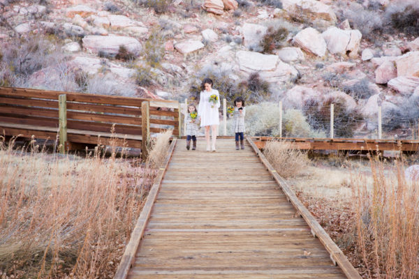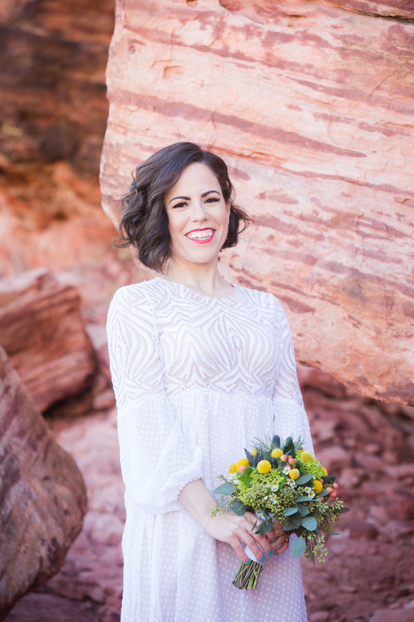 Calico Basin was just the right mix of adventure and intimacy for Michelle and Grant. These Canadians blended rustic with romance and a dash of relaxation for their Red Rock Canyon vows. I love the matching bouquets the flower girls and Michelle had.