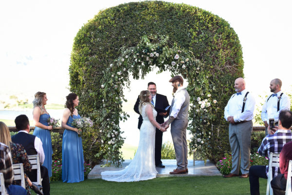 Paiute’s lawn is a gorgeous ceremony venue, too. The lush floral arch is the perfect frame for exchanging vows. Love that this couple who loves hiking, biking, fishing and anything outdoorsy were able to turn a classic golf course into their dream venue.
